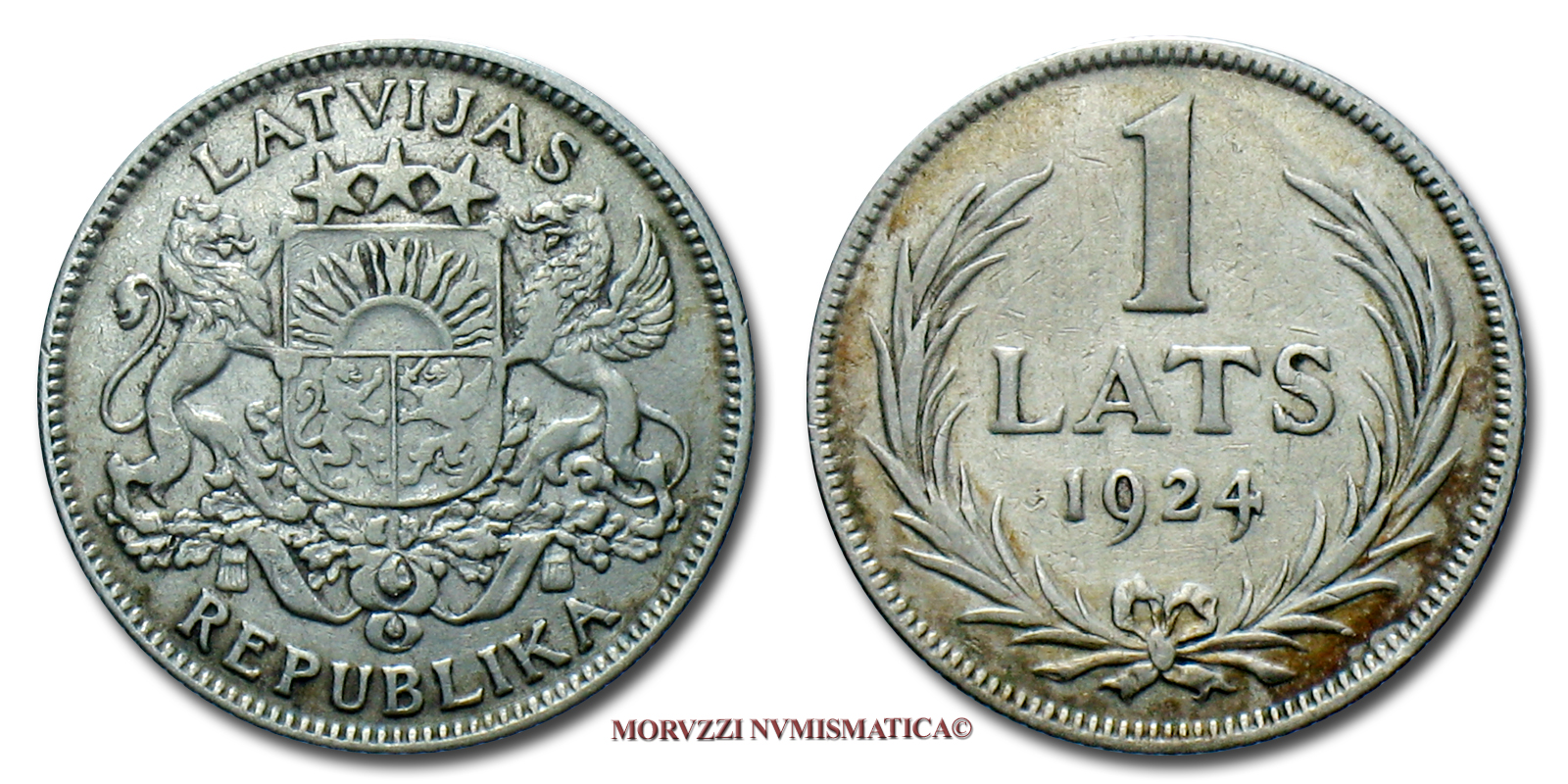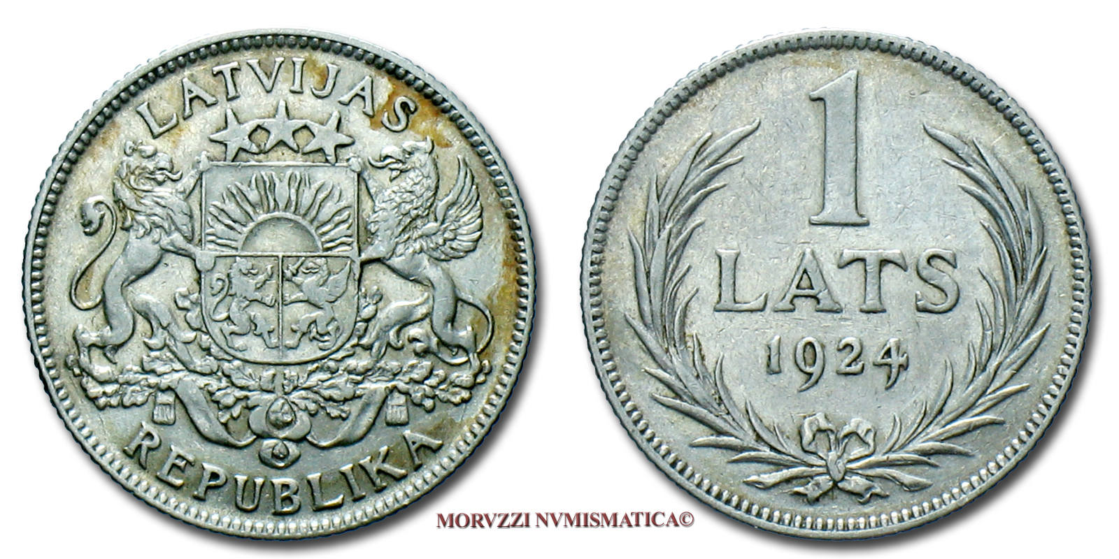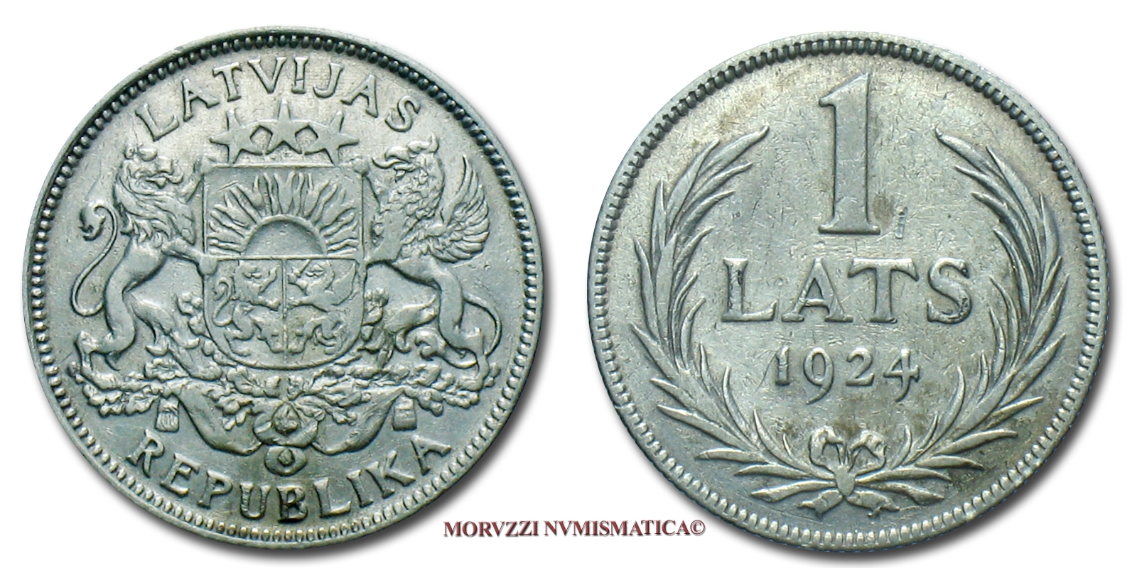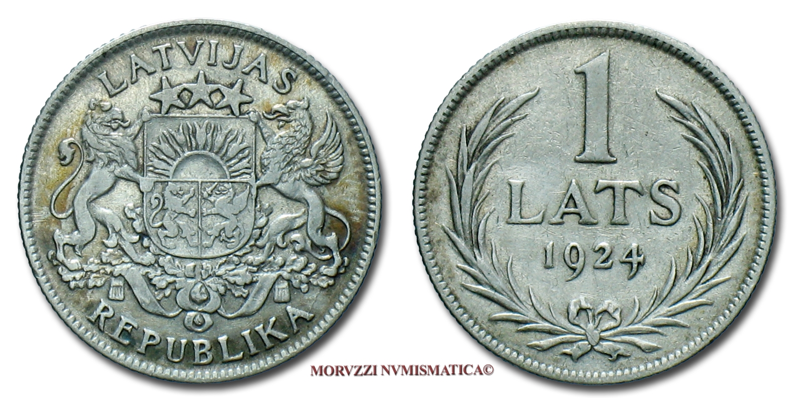 Lettonia, REPUBBLICA, 1 LATS, 1924, LATVIJAS REPUBLIKA, zecca di Londra, ARGENTO, BB, (KM 7) / monete mondiali europee moderne d'argento (WORLD SILVER COINS - moneta mondiale europea moderna da collezione)