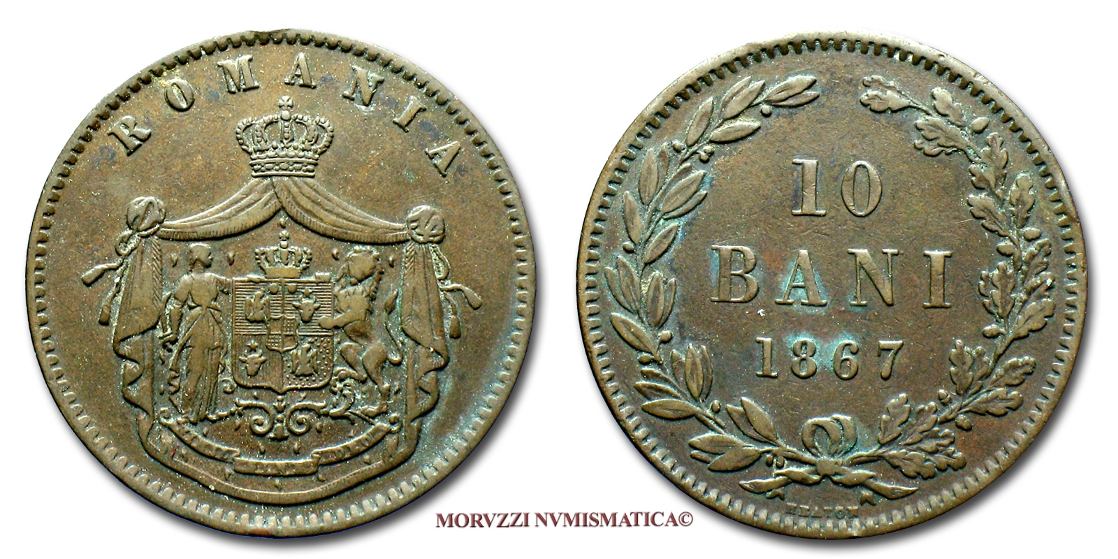Romania, CARLO I, Principe, 10 BANI, 1867, zecca di Heaton, RAME, qBB, (KM 4.1) / Prince Charles I Domnitor of Romania WORLD COPPER COINS (monete mondiali europee rumene moderne - moneta mondiale europea rumena moderna) Carol I Domnitor al României