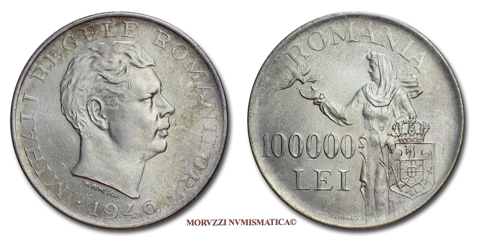Romania, MIHAI I, 100000 LEI, 1946, ARGENTO, FDC, (KM 71) / Michael I King of Romania SILVER World coins (monete mondiali d'argento) România Regatul României Mihai I Rege al României