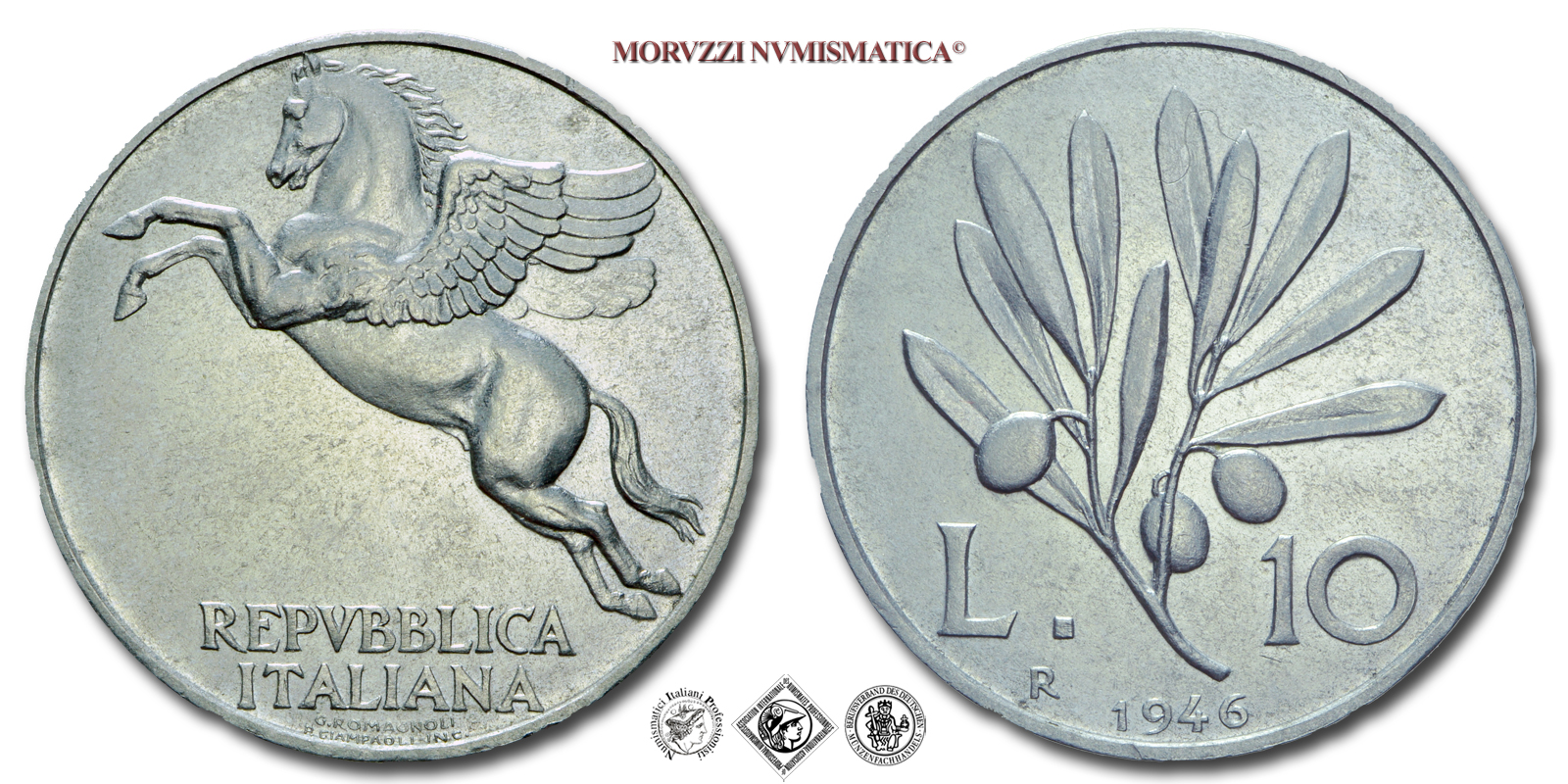 Repubblica Italiana, 10 LIRE, 1946, Olivo, Zecca di Roma, ITALMA, mSPL, (R), (Pagani 2301) / monete italiane moderna rare (moneta italiana moderna rara da collezione) - OFFERTA SPECIALE