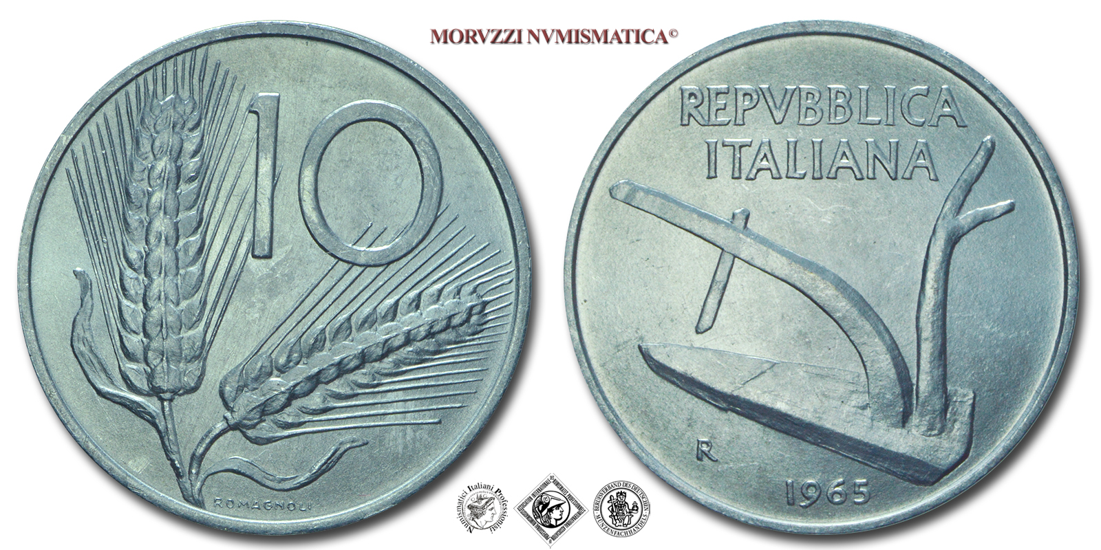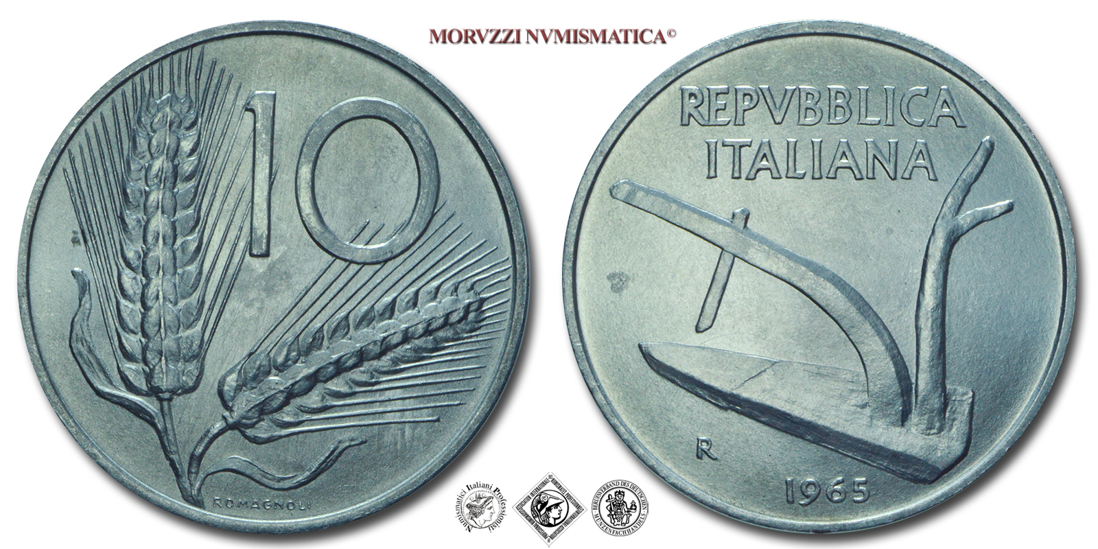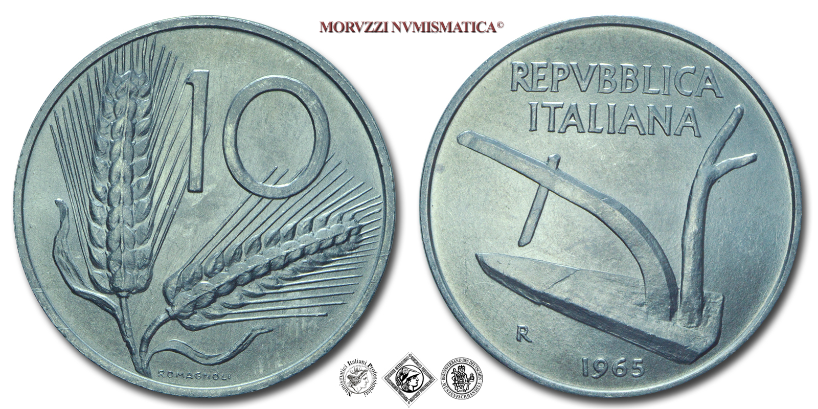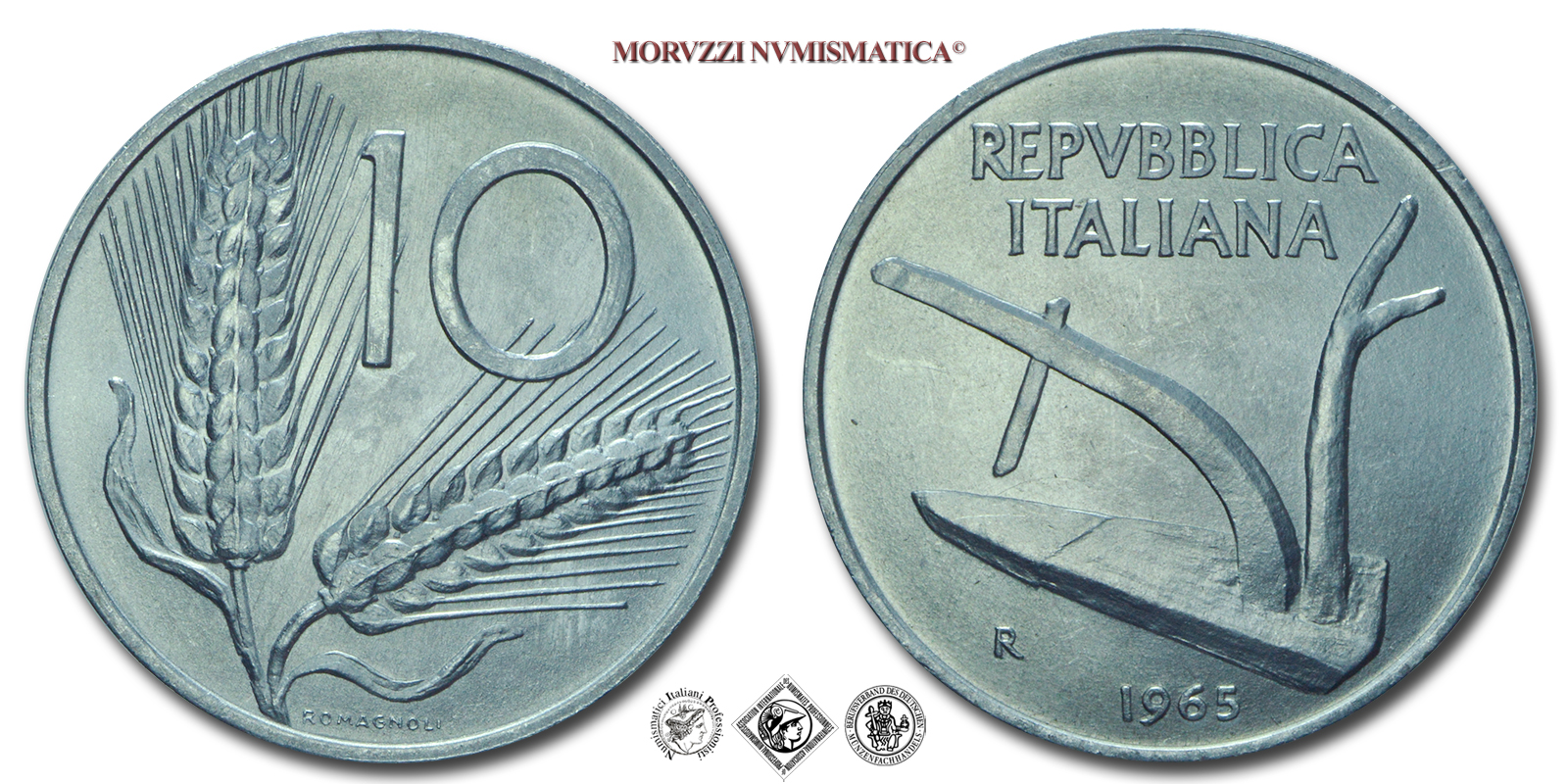Repubblica Italiana, 10 LIRE, 1965, Spighe, Zecca di Roma, ITALMA, FDC, (NC), (Pagani 2312) / monete italiane moderne (moneta italiana moderna da collezione)