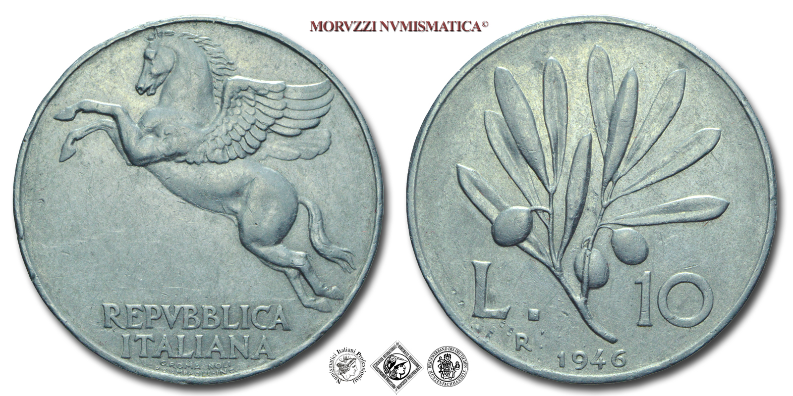 Repubblica Italiana, 10 LIRE, 1946, Olivo, Zecca di Roma, ITALMA, mBB, (R), (Pagani 2301) / monete italiane moderna rare (moneta italiana moderna rara da collezione)