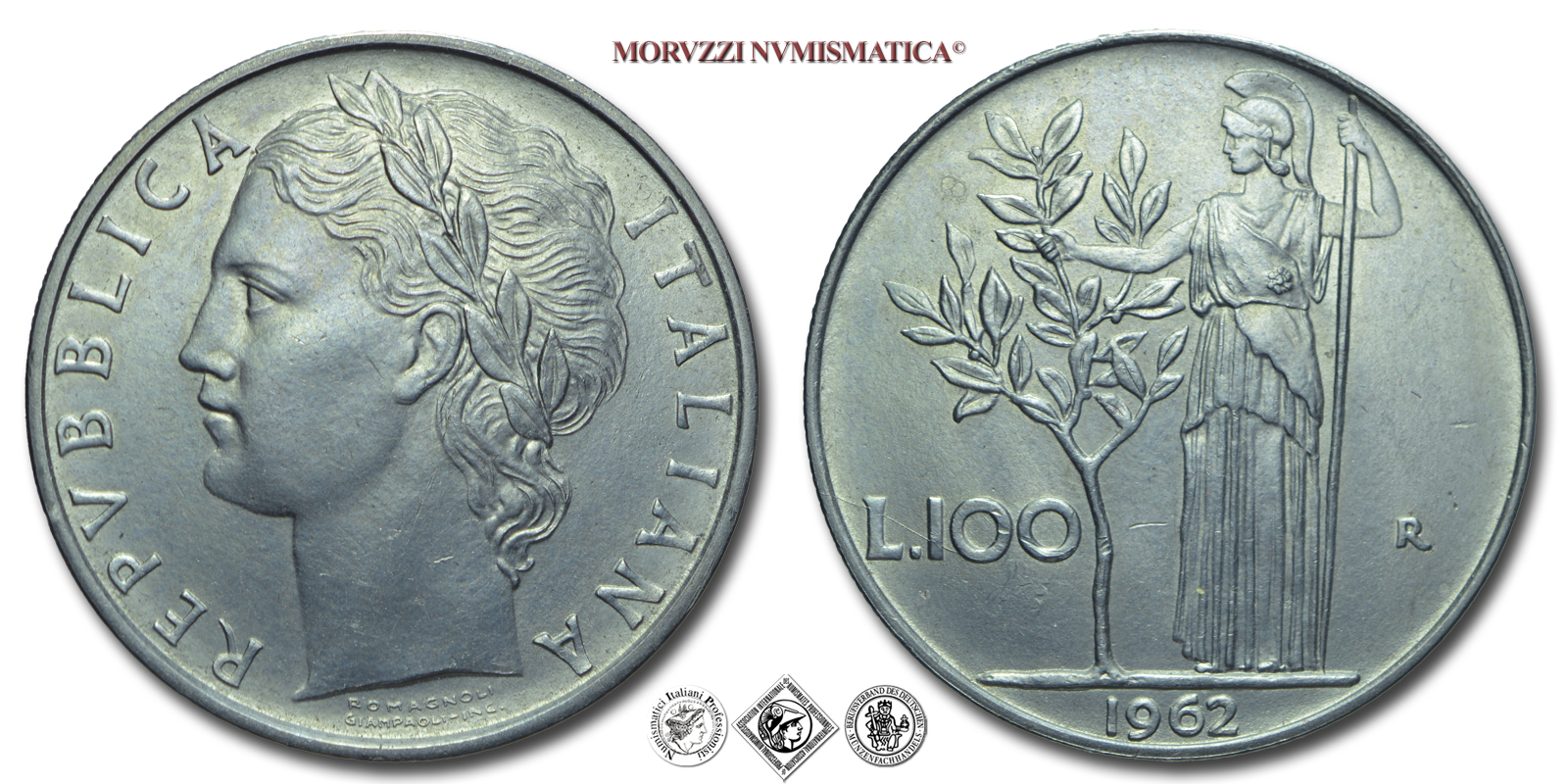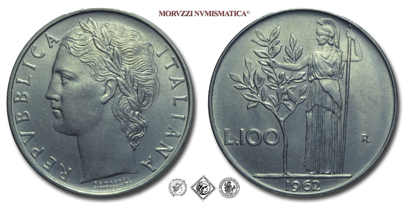 Repubblica Italiana, 100 LIRE, 1962, Minerva, Zecca di Roma, ACMONITAL, FDC, (Pagani 2158) / monete italiane moderne (moneta italiana moderna da collezione)
