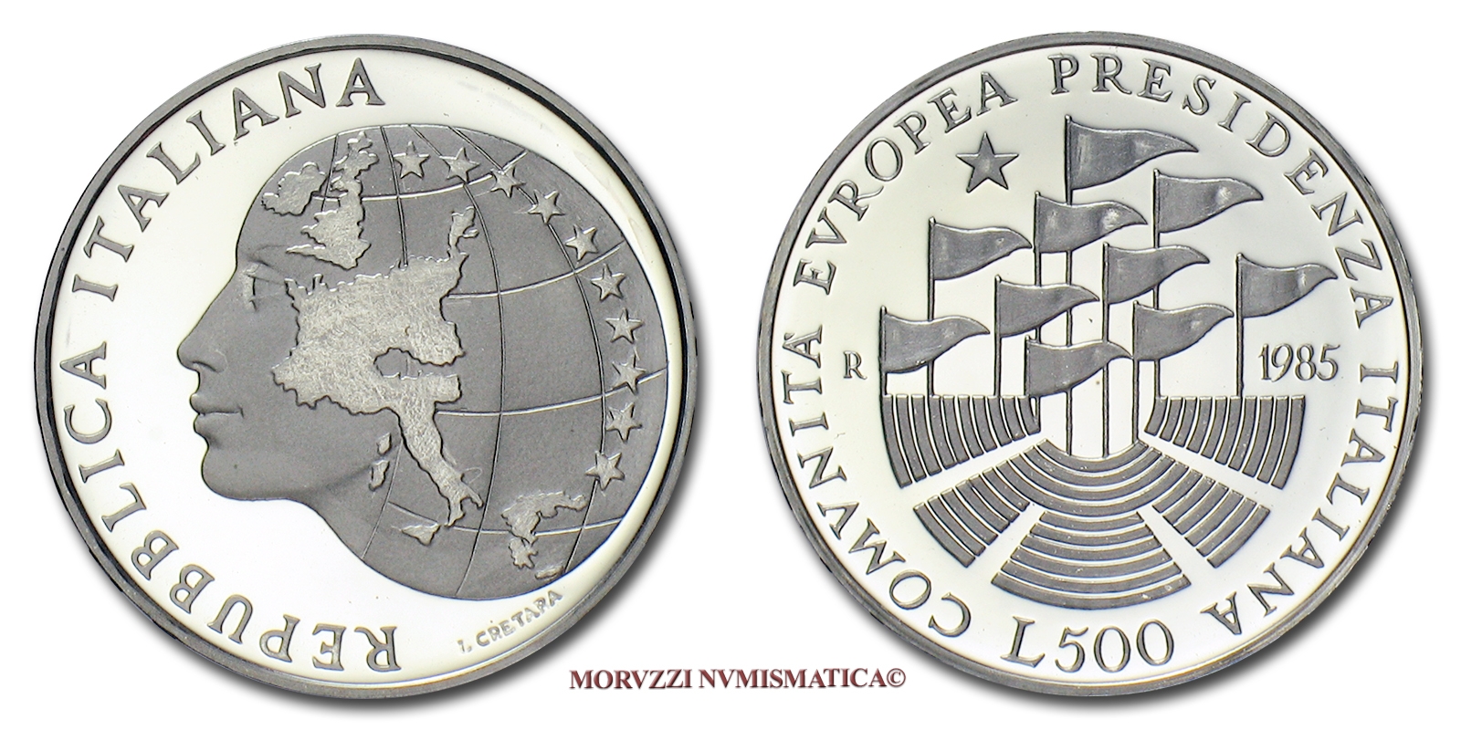 Repubblica Italiana, 500 LIRE, 1985, Presidenza C.E.E. (Comunità Economica Europea / CEE), ARGENTO, FS / PROOF, (Unificato 1515) / monete italiane d'argento