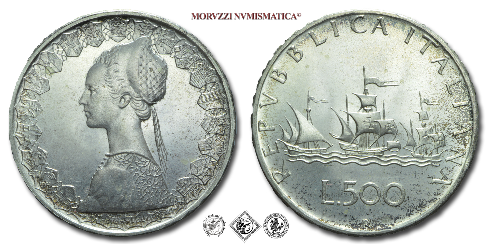 Repubblica Italiana, LIRE 500, Caravelle, 1961, Zecca di Roma, ARGENTO, mSPL, (Pagani 2104) / monete italiane moderne d'argento (moneta italiana moderna da collezione)