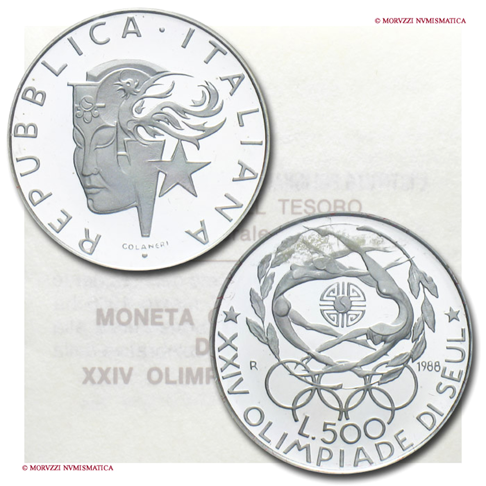 Repubblica Italiana, 500 LIRE, 1988, XXIV Olimpiade di Seul, Zecca di Roma, ARGENTO, FS, (Unificato 1563) / monete italiane moderne commemorative d'argento (moneta italiana moderna commemorativa da collezione)