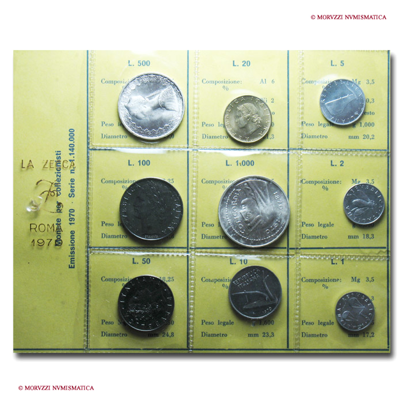 Italia, SERIE ANNUALE UFFICIALE, 9 valori, 1970, FDC - FOTO GENERICA
