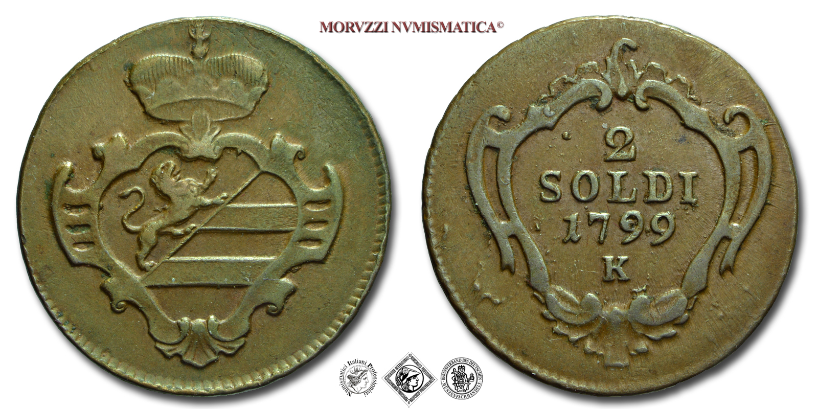 Gorizia, FRANCESCO II D'ASBURGO, 2 SOLDI, 1799 K, Zecca di Kremnitz, BRONZO, mBB, (CNI 13) / monete italiane preunitarie (moneta italiana preunitaria)