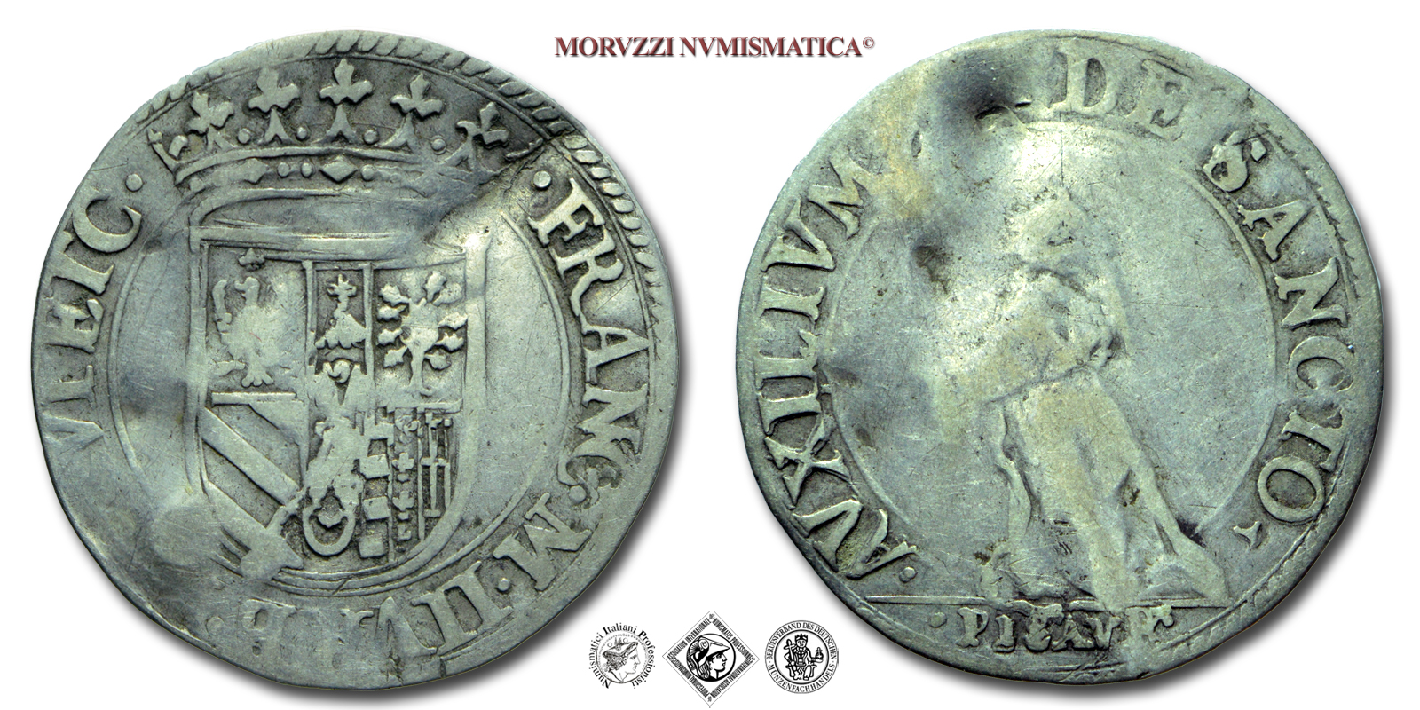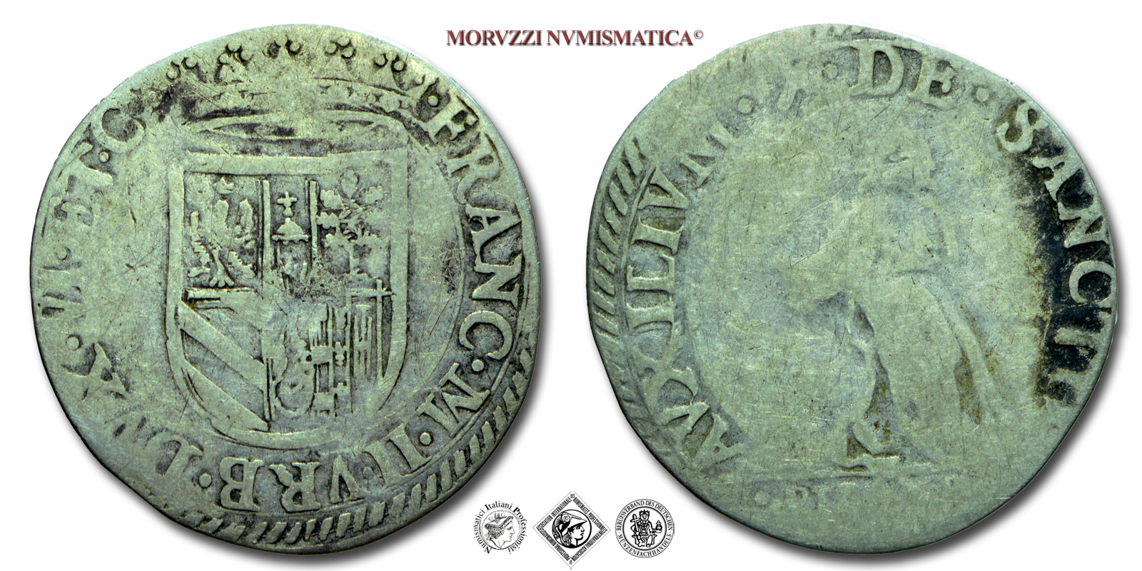 Pesaro, FRANCESCO MARIA II DELLA ROVERE, GIULIO, *Senza data, • AVXILIVM • DE • SANCTO • San Francesco in ginocchio riceve le stigmate, Zecca di Pesaro, ARGENTO, MB, (CNI 31) / monete italiane preunitarie d'argento (moneta italiana preunitaria)