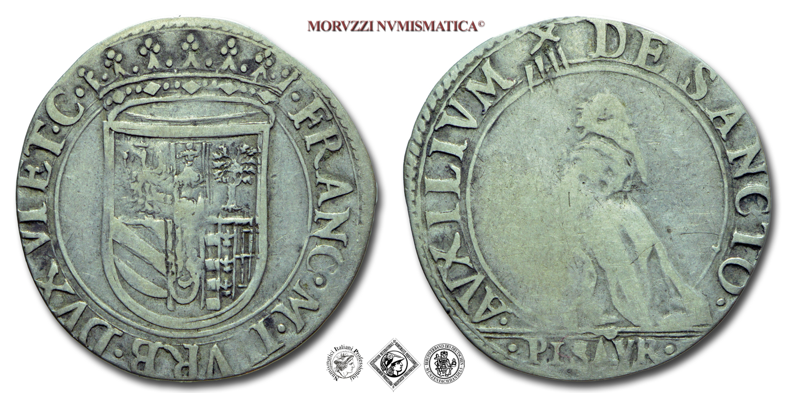 Pesaro, FRANCESCO MARIA II DELLA ROVERE, GIULIO, *Senza data, • AVXILIVM DE SANCTO • San Francesco in ginocchio riceve le stigmate, Zecca di Pesaro, ARGENTO, MB, (CNI 20 var.) / monete italiane preunitarie d'argento (moneta italiana preunitaria)