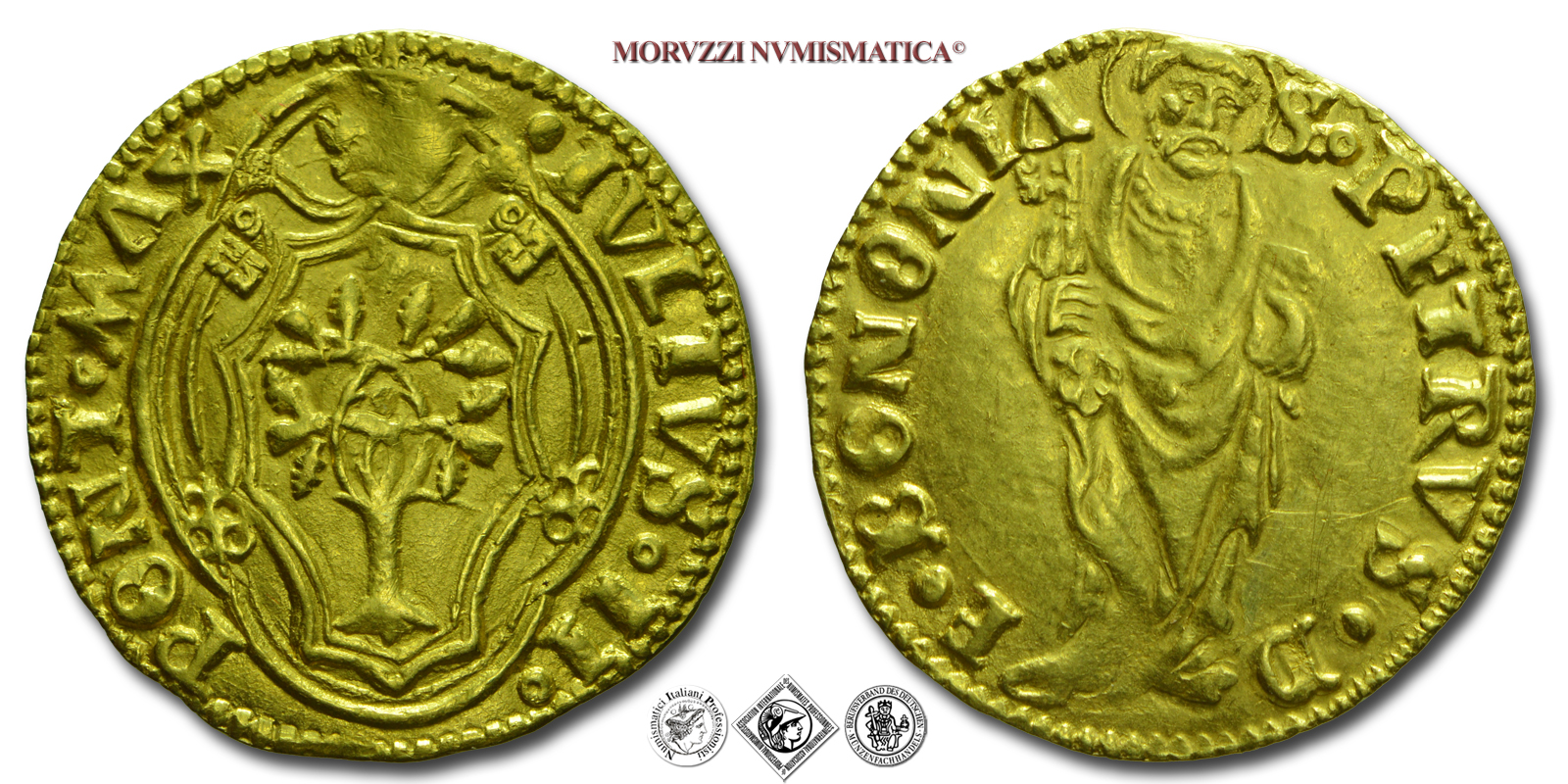 Stato Pontificio, GIULIO II, Della Rovere, DUCATO, 1503-1513, S • PETRVS • DE • BONONIA S. Pietro con libro e chiavi, Zecca di Bologna, ORO, mBB, (RR), (Muntoni 87) / monete papali rare d'oro (monete pontificie da collezione - moneta papale rara)