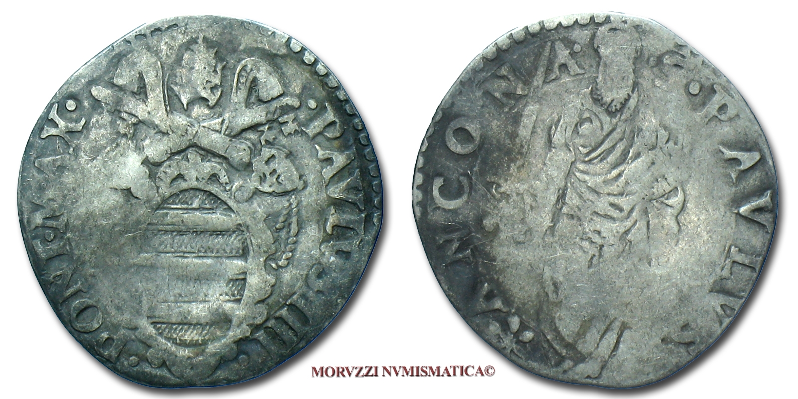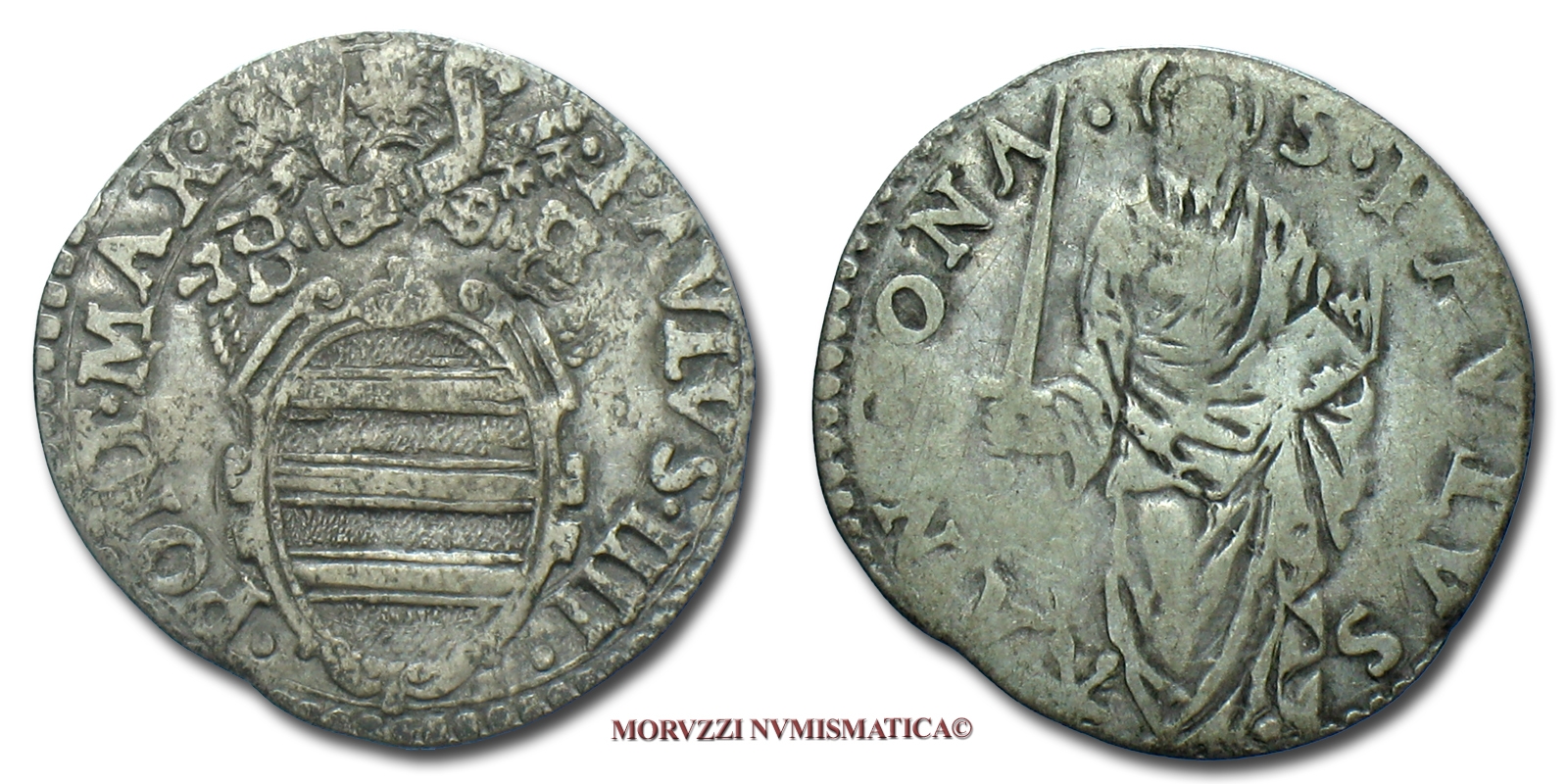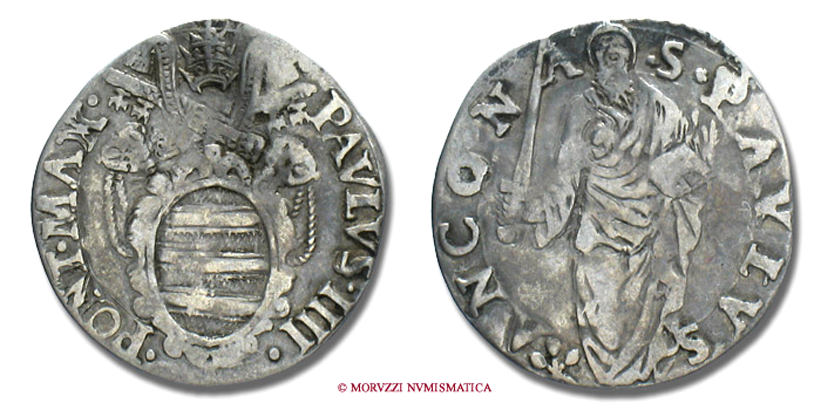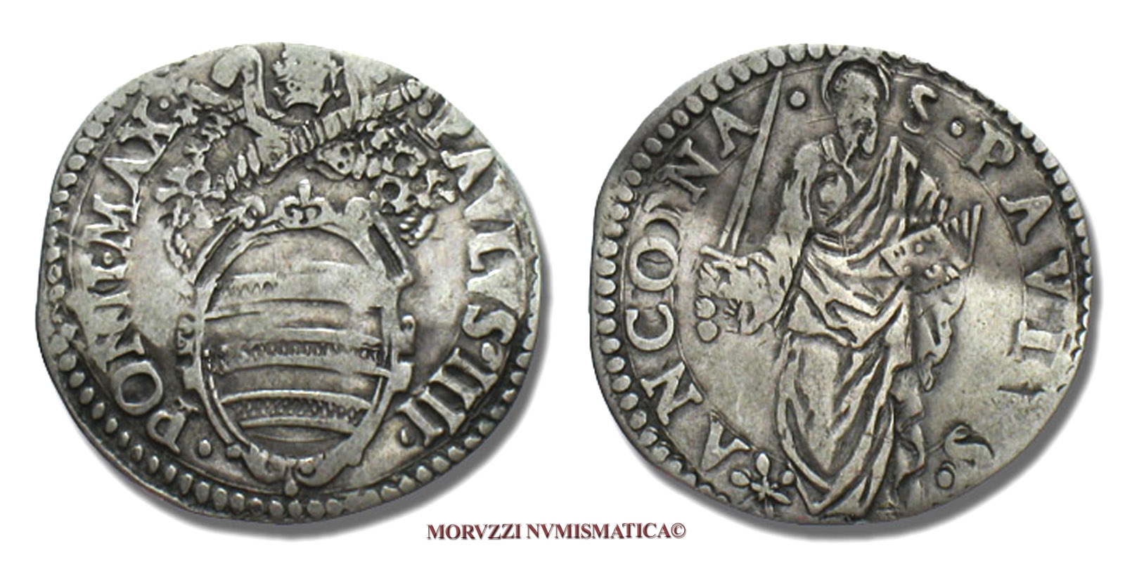 Stato Pontificio, PAOLO IV, GIULIO, S PAVLVS ANCONA San Paolo, zecca di Ancona, ARGENTO, MB, (Muntoni 42) / Pope Paulus IV Carafa SILVER coins (monete papali d'argento - monete pontificie da collezione - moneta papale - moneta pontificia)