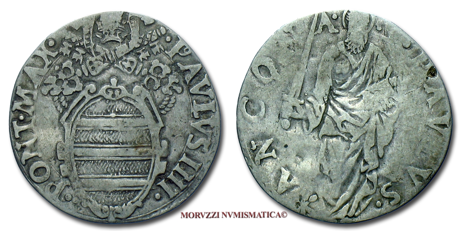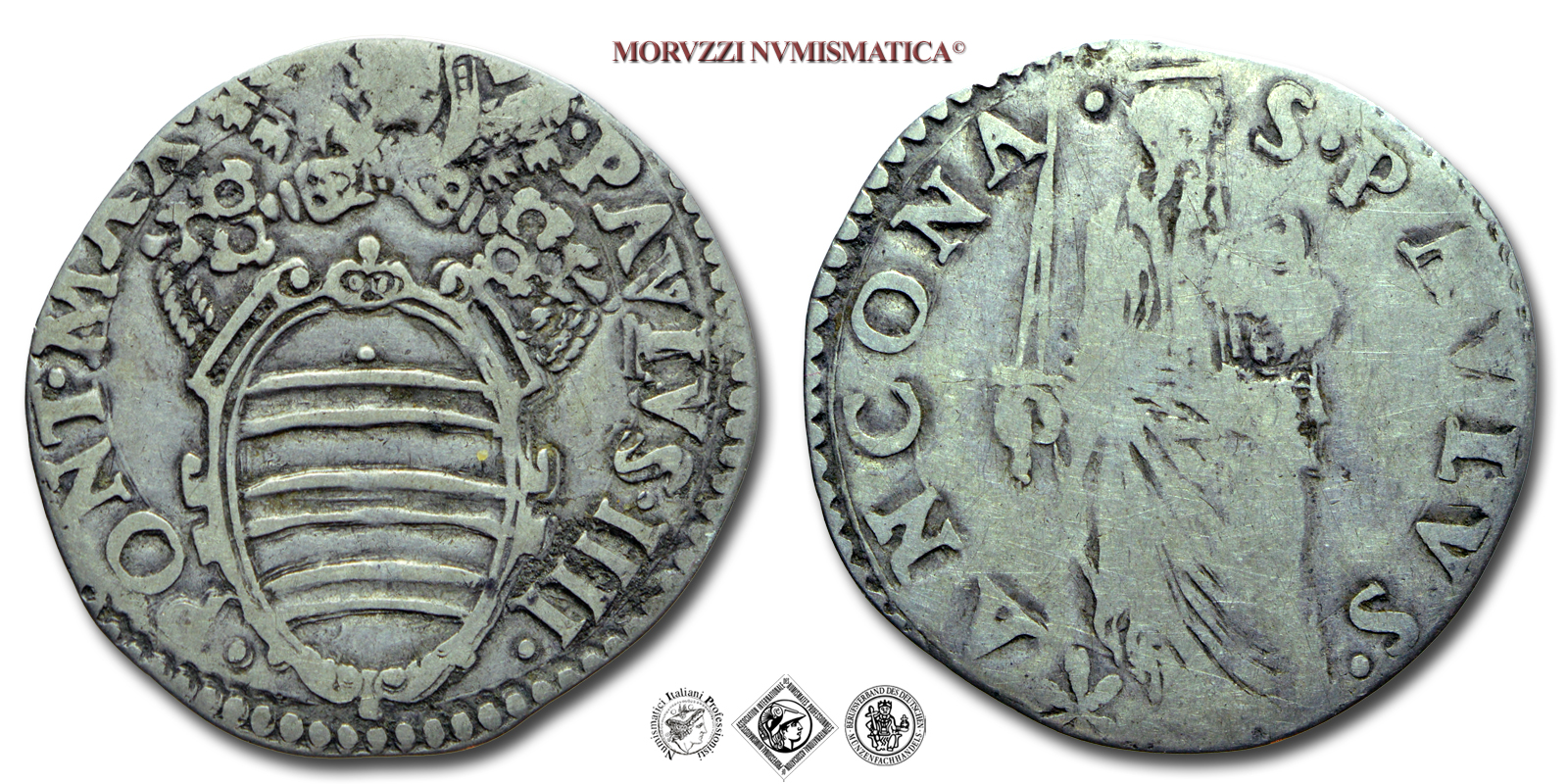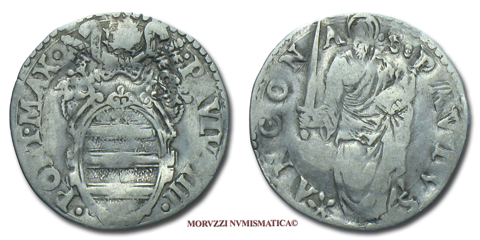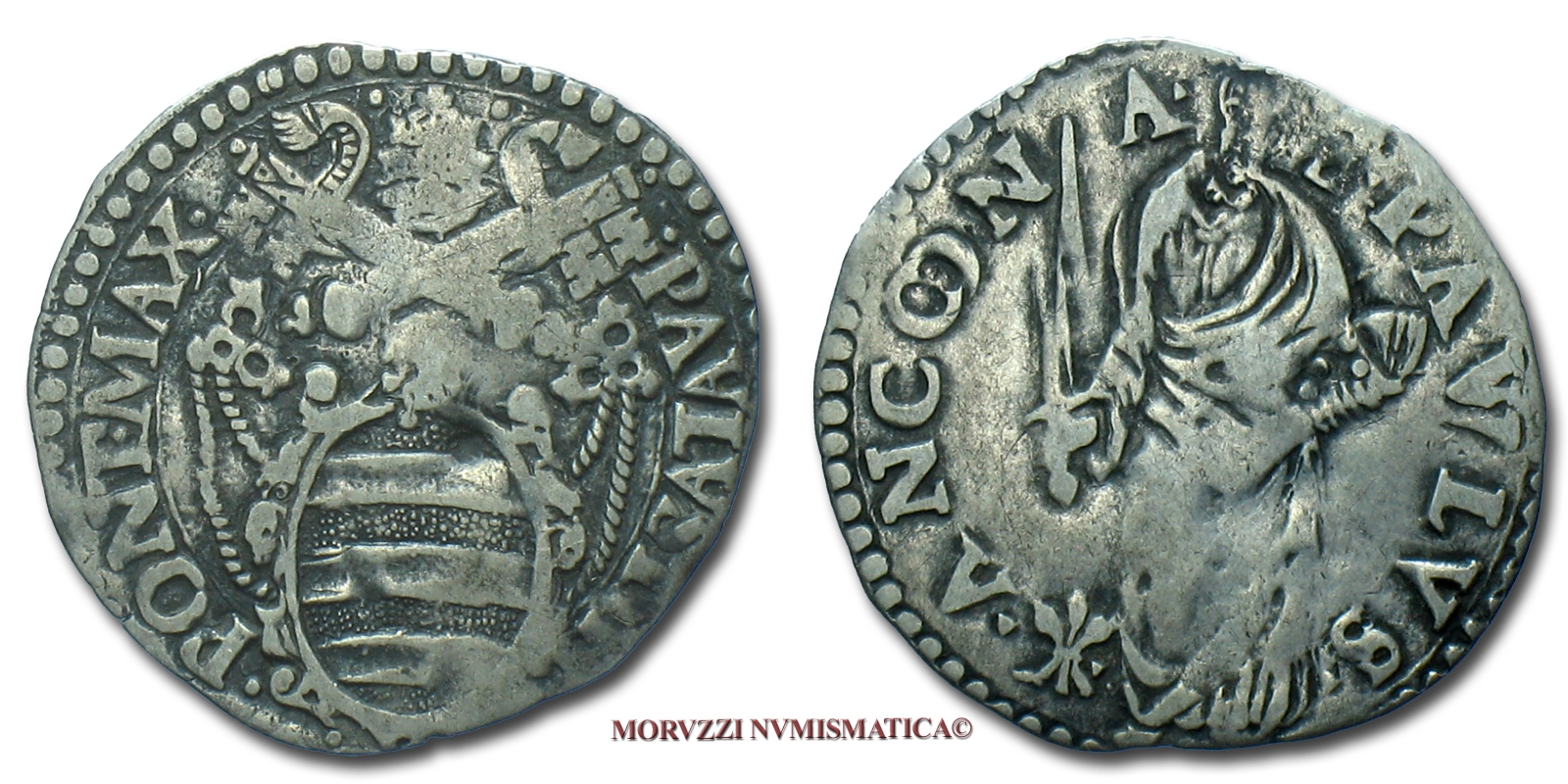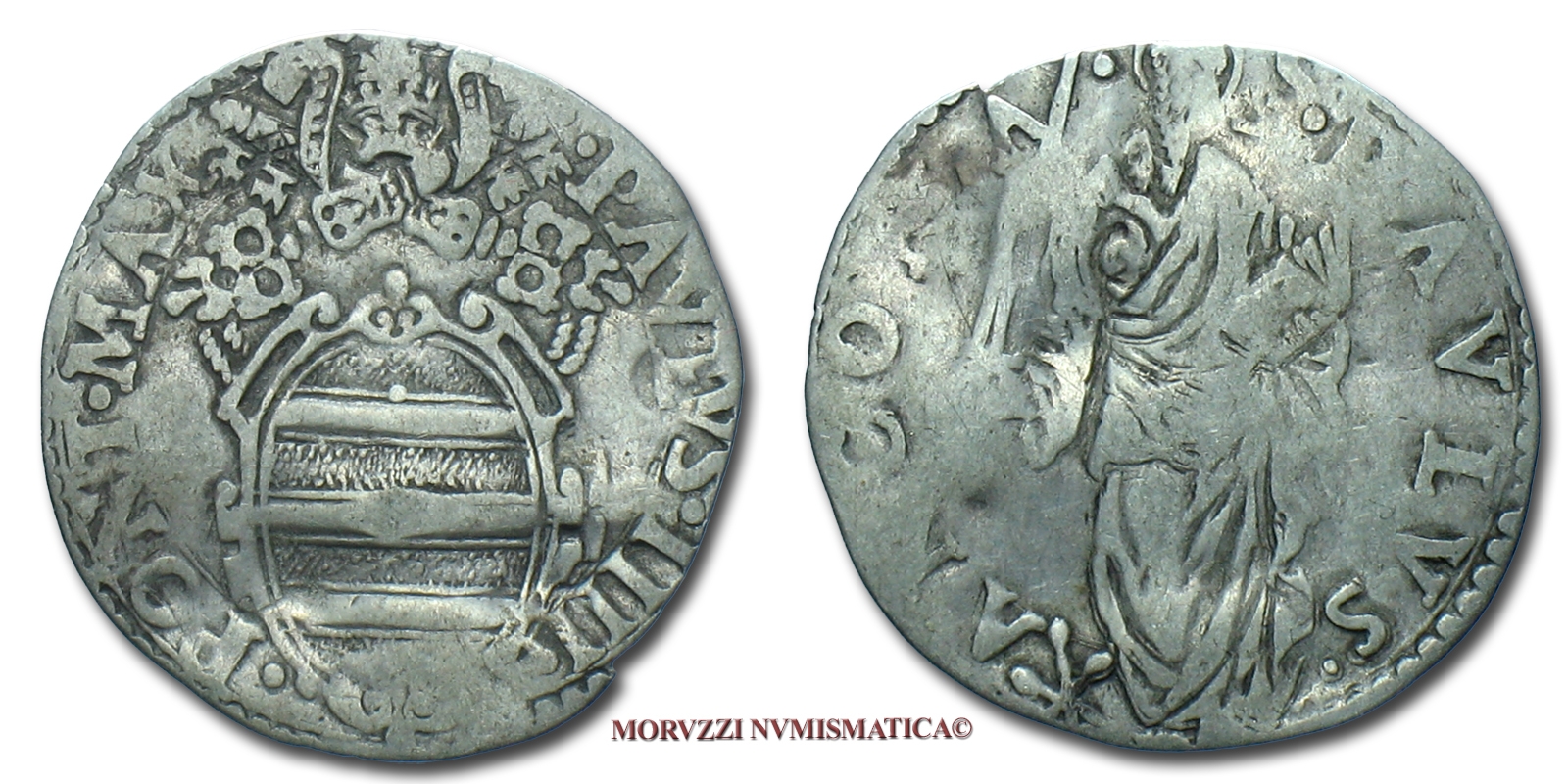 Stato Pontificio, PAOLO IV, GIULIO, S PAVLVS ANCONA San Paolo, zecca di Ancona, ARGENTO, MB, (Muntoni 42) / Pope Paulus IV Carafa SILVER coins (monete papali d'argento - monete pontificie da collezione - moneta papale - moneta pontificia)