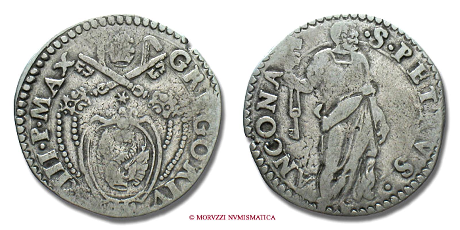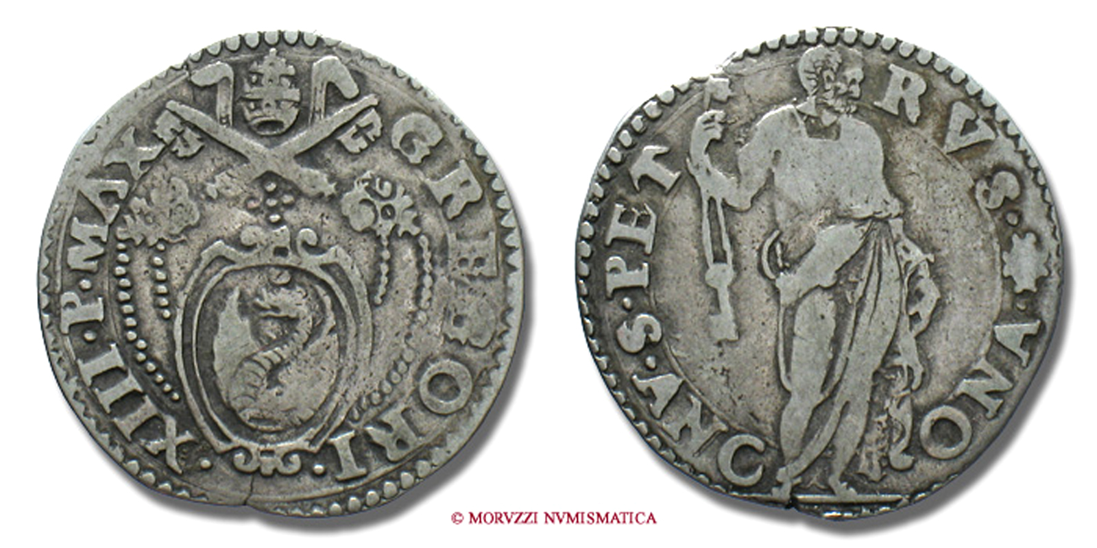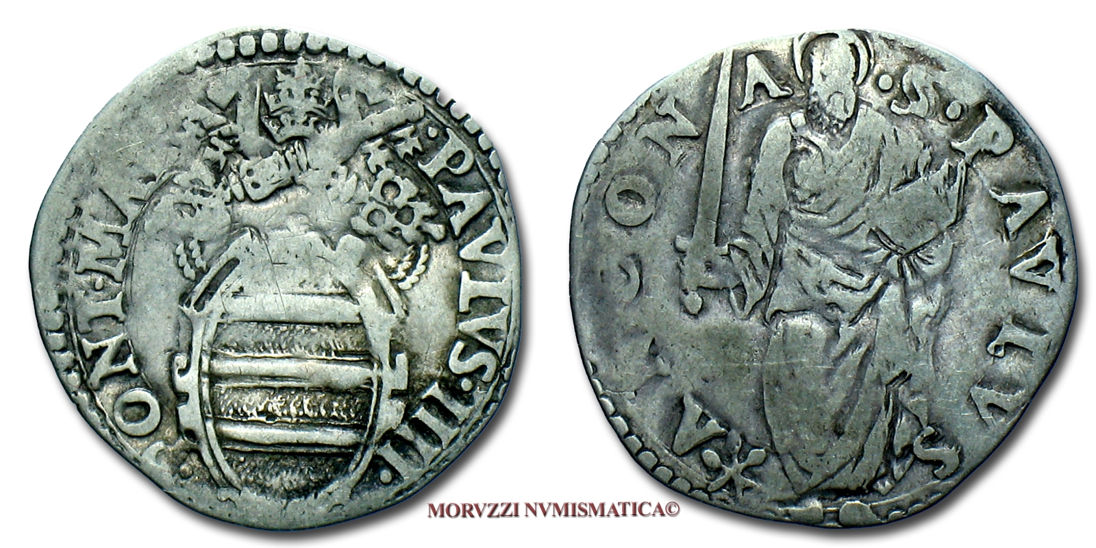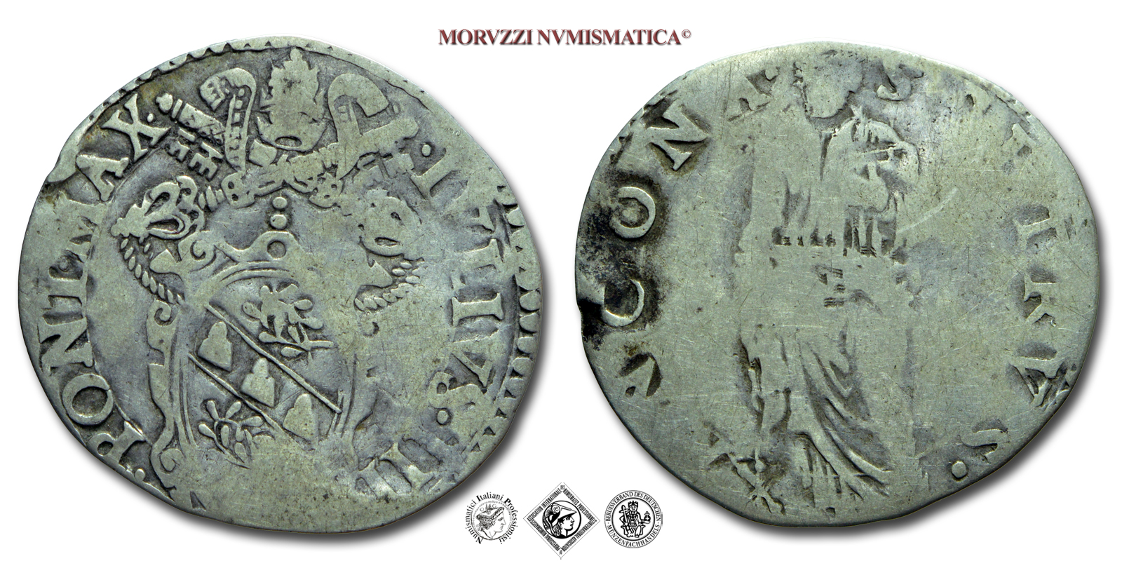 Stato Pontificio, PAOLO IV, GIULIO, S PAVLVS ANCONA San Paolo, zecca di Ancona, ARGENTO, MB, (Muntoni 42) / Pope Paulus IV Carafa SILVER coins (monete papali d'argento - monete pontificie da collezione - moneta papale - moneta pontificia)