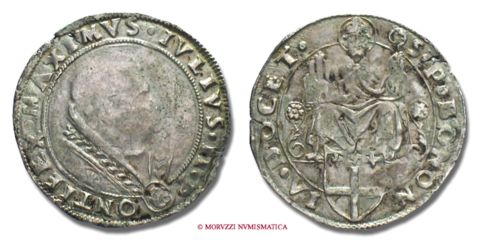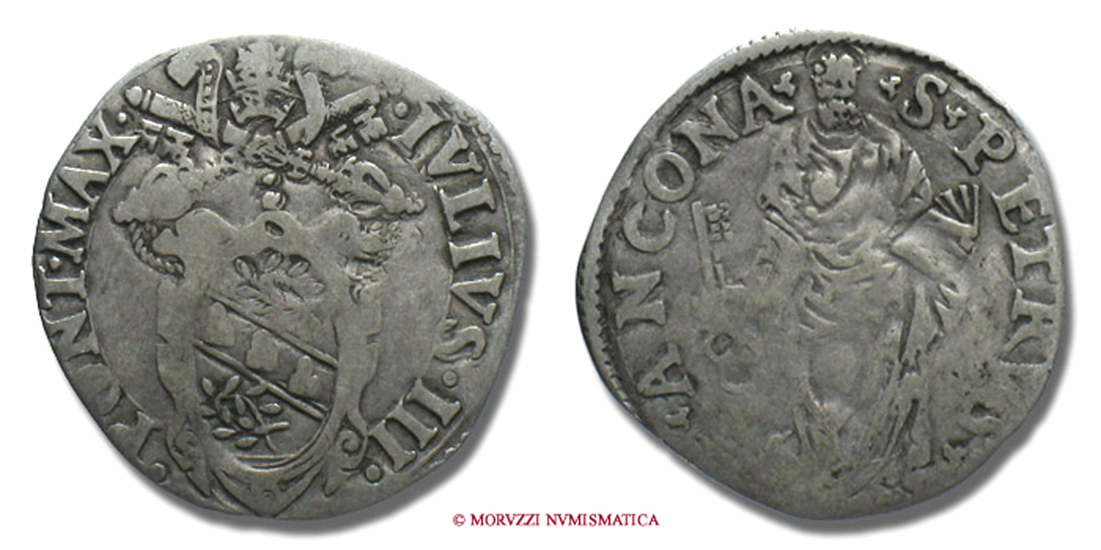 Stato Pontificio, GIULIO III, Ciocchi del Monte, GIULIO, *Senza data, ✷ ANCONA S PETRVS • San Pietro stante con le chiavi in basso, Zecca di Ancona, ARGENTO, qMB, (Muntoni 55) / monete papali d'argento (monete pontificie - moneta papale da collezione)