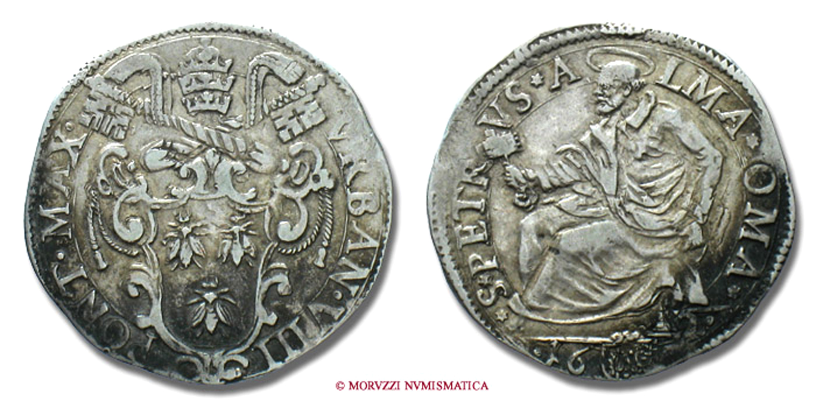Stato Pontificio, URBANO VIII, TESTONE, 1632 (variante ALMA . OMA), San Pietro, zecca di Roma, ARGENTO, mBB, (RRR), (Muntoni 50 var.) / Pope Urbanus VIII Barberini SILVER COINS (monete papali d'argento - monete pontificie rare - moneta papale rara)