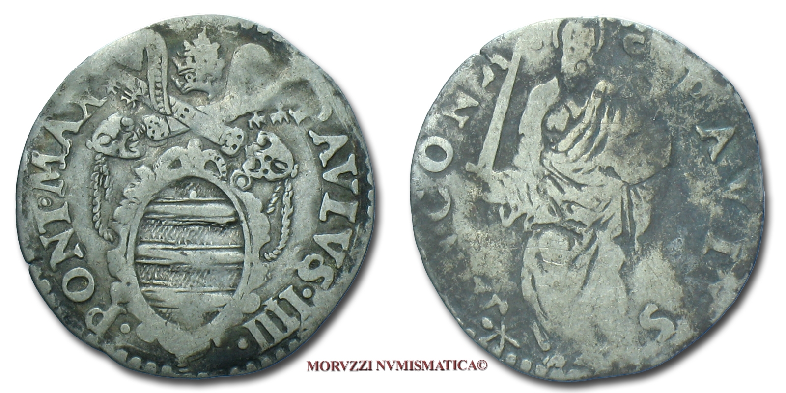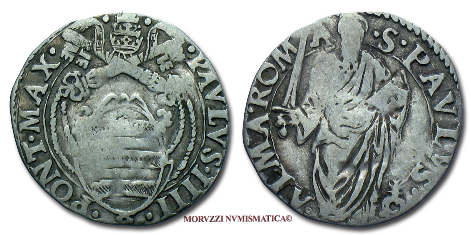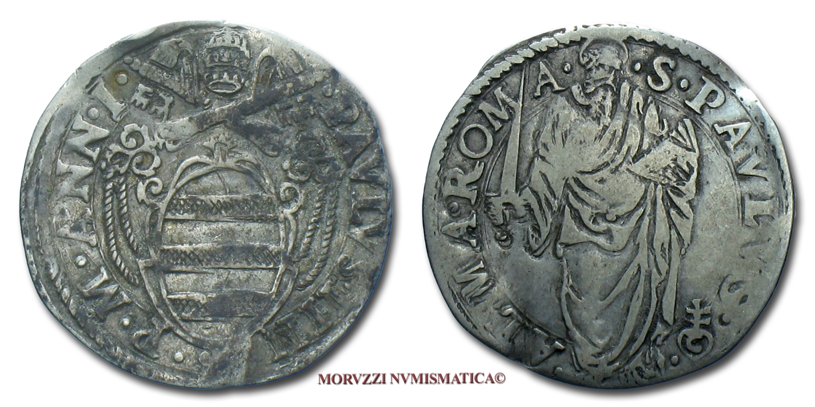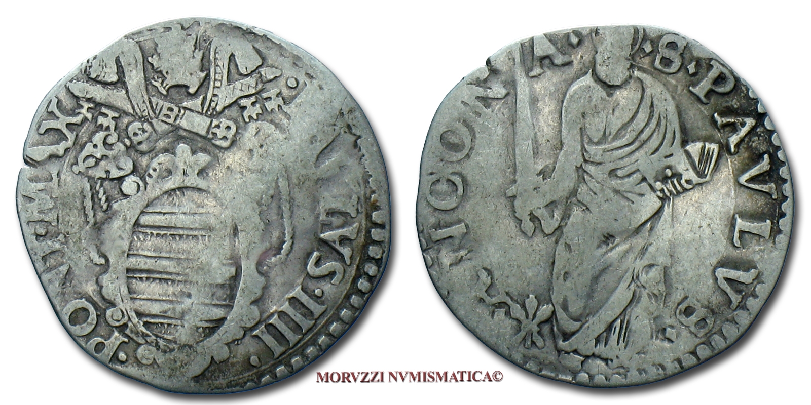 Stato Pontificio, PAOLO IV, GIULIO, S PAVLVS ALMA ROMA San Paolo, zecca di Roma, ARGENTO, MB, (Muntoni 17) / Pope Paulus IV Carafa SILVER coins (monete papali d'argento - monete pontificie da collezione - moneta papale - moneta pontificia)