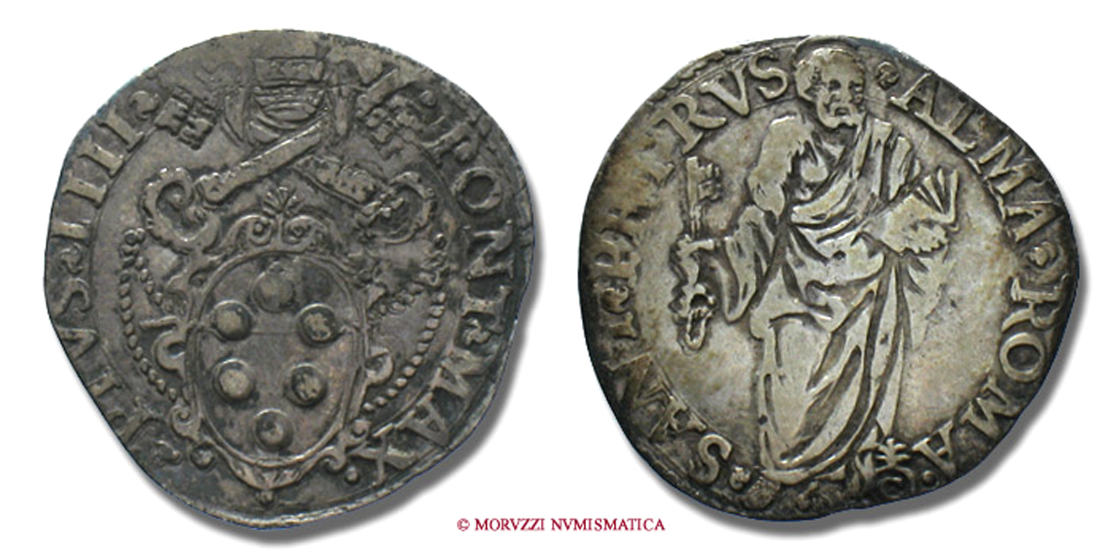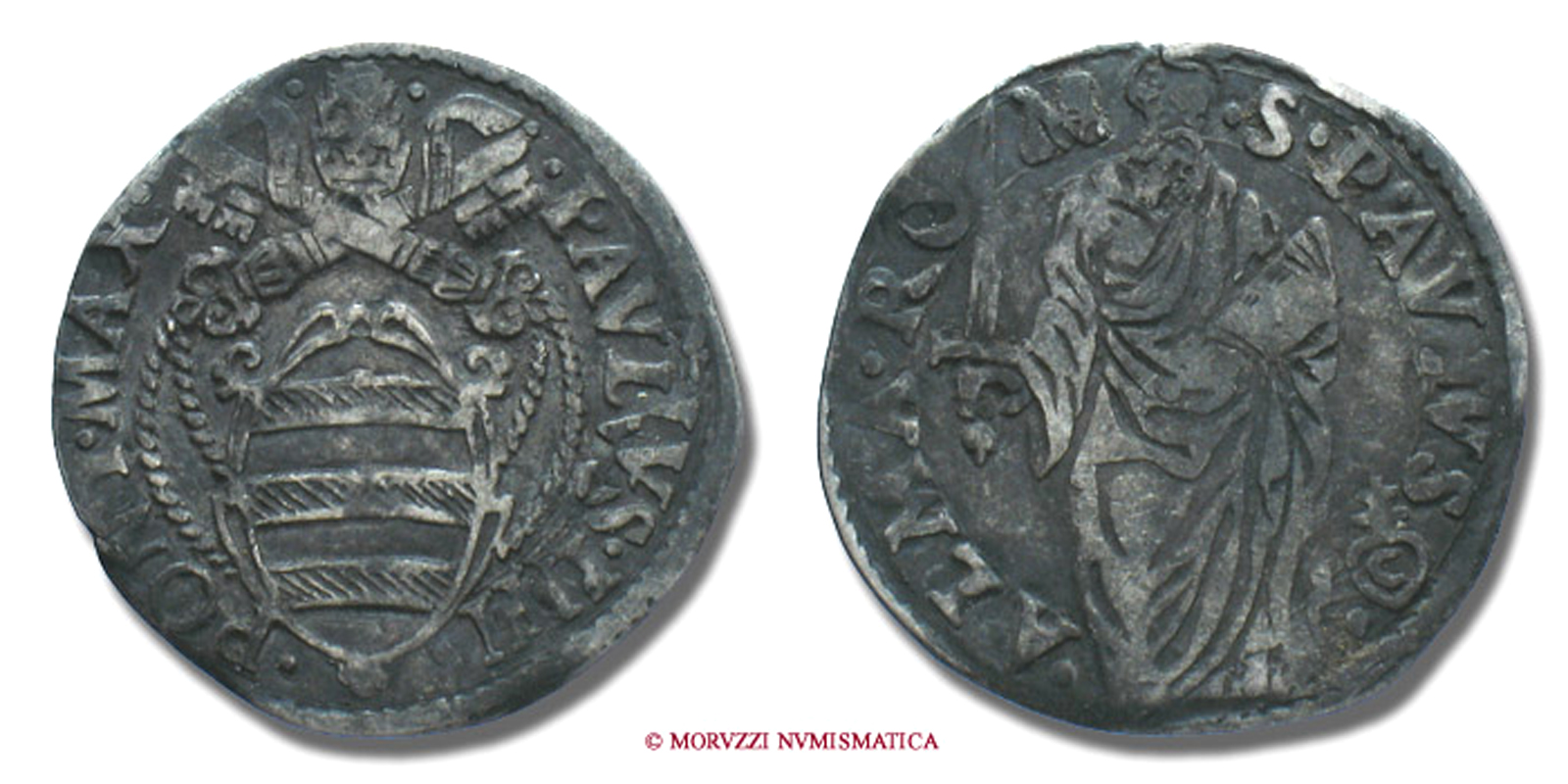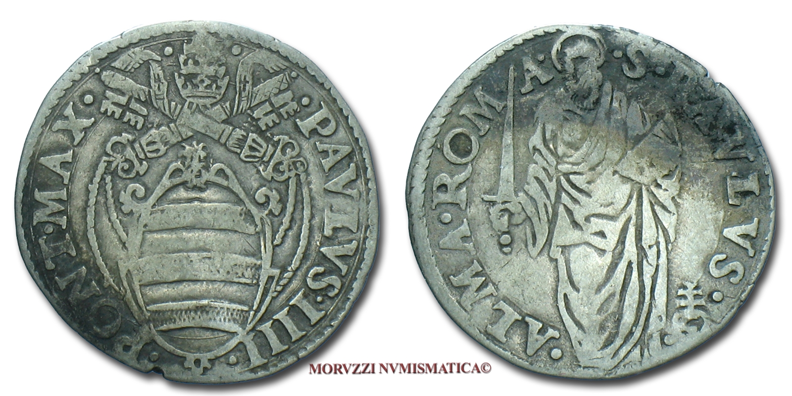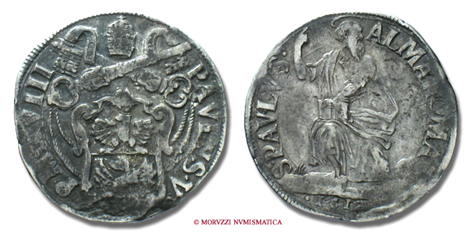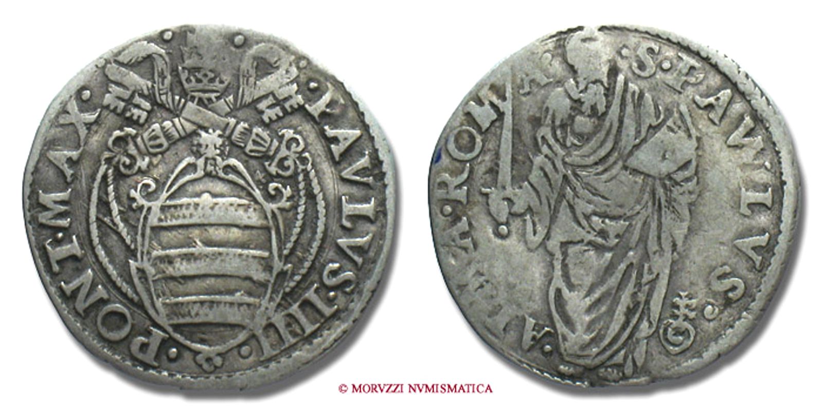 Stato Pontificio, PAOLO IV, GIULIO, S PAVLVS ALMA ROMA San Paolo, zecca di Roma, ARGENTO, MB, (Muntoni 17) / Pope Paulus IV Carafa SILVER coins (monete papali d'argento - monete pontificie da collezione - moneta papale - moneta pontificia)