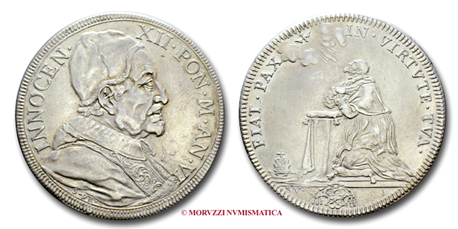 Stato Pontificio, INNOCENZO XII, Pignatelli, 1/12 SCUDO, 1692 A II, PCL (Petrus Cardinalis Legatus) in corsivo, Zecca di Avignone, ARGENTO, mBB, (R), (Muntoni 127) / monete papali pontificie rare d'argento (moneta papale pontificia rara da collezione)