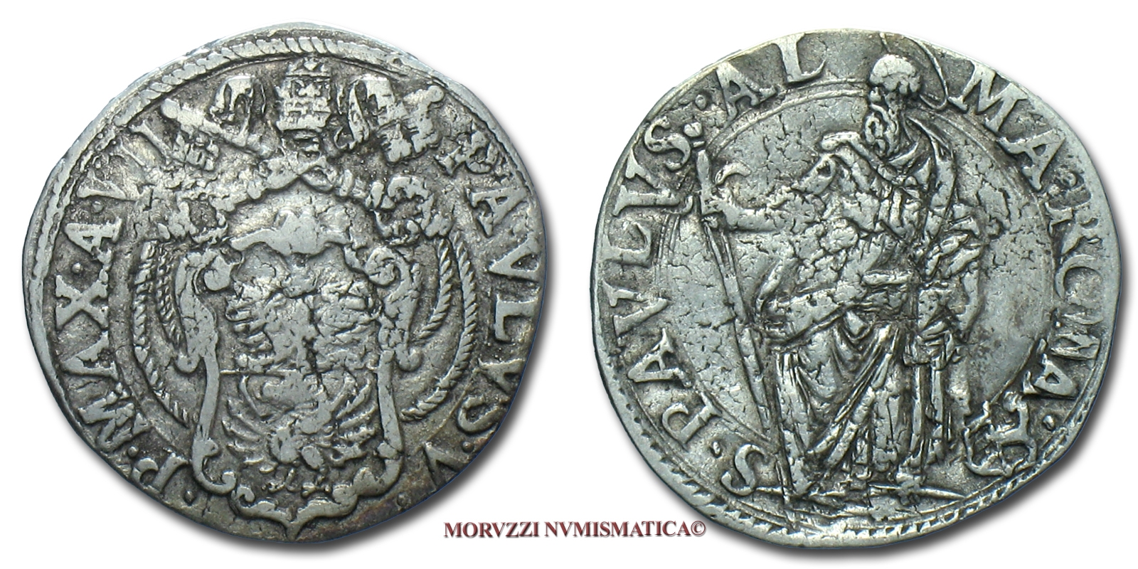 Stato Pontificio, PAOLO V, TESTONE, A VII, San Paolo, zecca di Roma, ARGENTO, BB, (Muntoni 32) / Papal States Pope Paulus V Borghese SILVER coins (monete papali d'argento - monete pontificie da collezione - moneta papale - moneta pontificia)