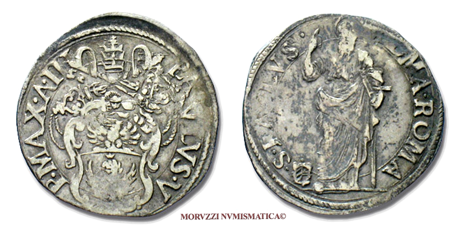 Stato Pontificio, PAOLO V, GIULIO, A III (1607), S PAVLVS ALMA ROMA, zecca di Roma, ARGENTO, BB, (Muntoni 92) / Papal States Pope Paulus V Borghese SILVER COINS (monete papali d'argento - monete pontificie - moneta papale - San Paolo) Papst Paul V.