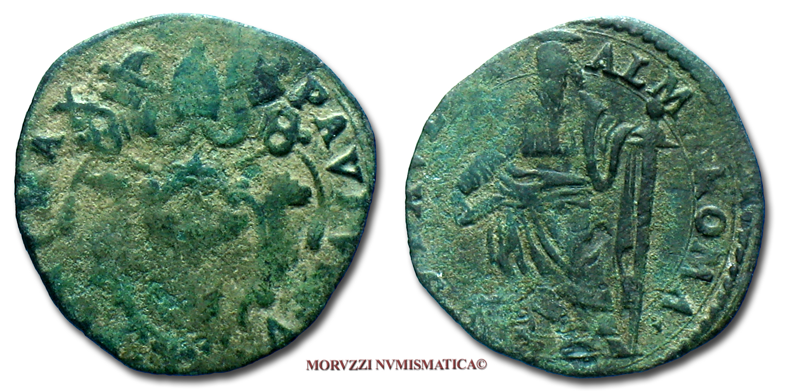 Stato Pontificio, PAOLO V, Borghese, QUATTRINO, Senza data, PAVLVS • ALMA ROMA A • II • San Paolo con spada e libro aperto, Zecca di Roma, RAME, qSPL, (Muntoni 56) / monete papali pontificie (moneta papale pontificia da collezione)