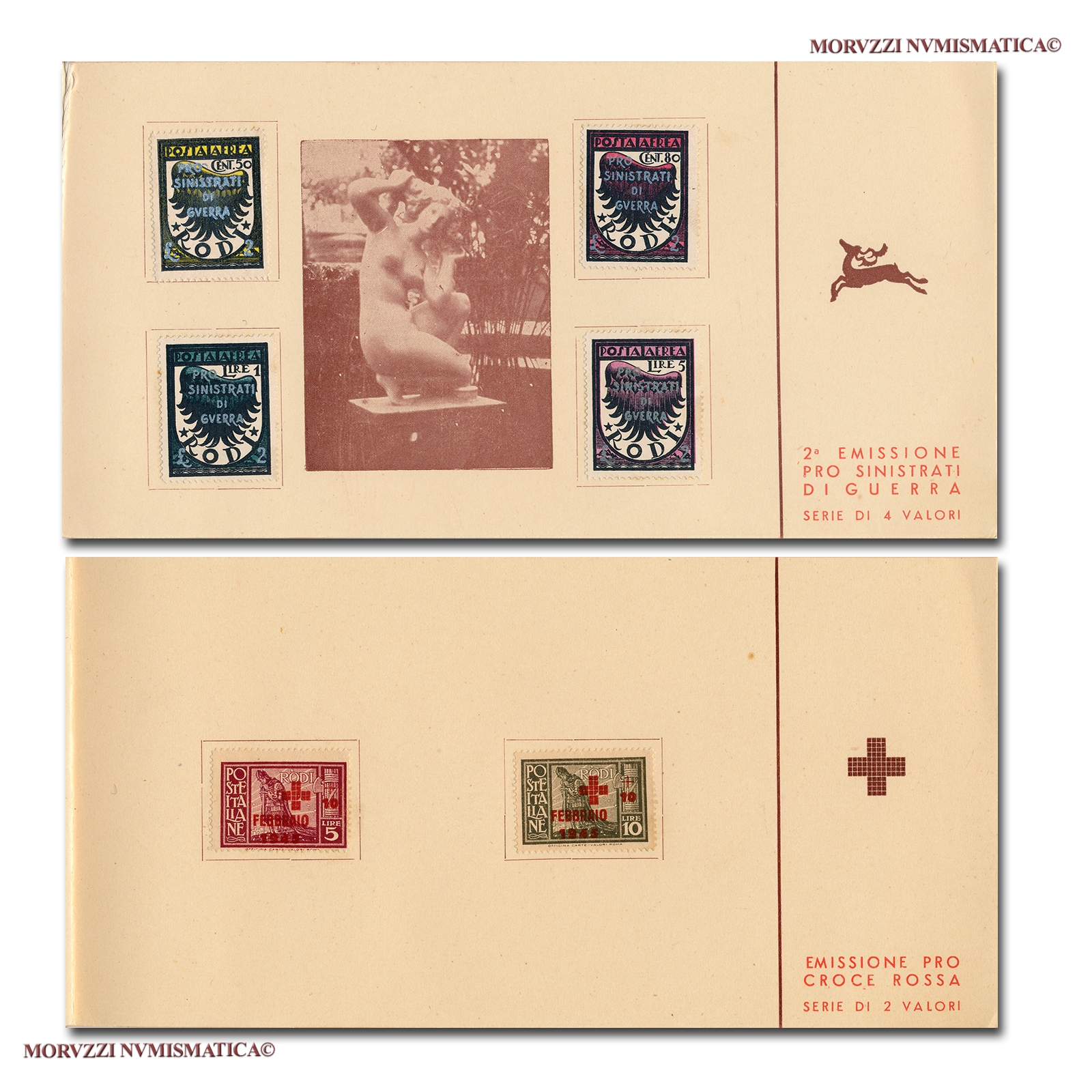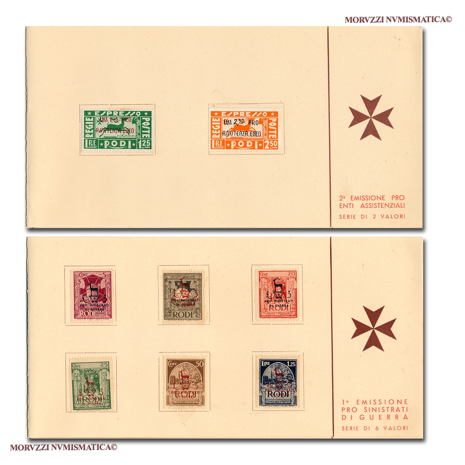 Il libretto si compone di: prima emissione pro enti assistenziali (serie di 8 valori), seconda emissione pro enti assistenziali (serie di 2 valori), prima emissione pro sinistrati di guerra (serie di 6 valori), seconda emissione pro sinistrati di guerra (serie di 4 valori), emissione pro Croce Rossa (serie di 2 valori).