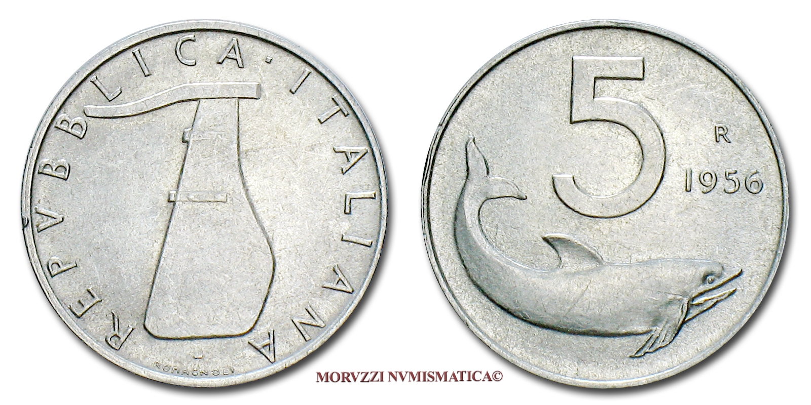 Repubblica Italiana, 5 LIRE, 1956, Delfino, zecca di Roma, mSPL, (R), (Pagani 2361) / monete italiane moderne rare (moneta italiana in italma rara da collezione) - OFFERTA SPECIALE