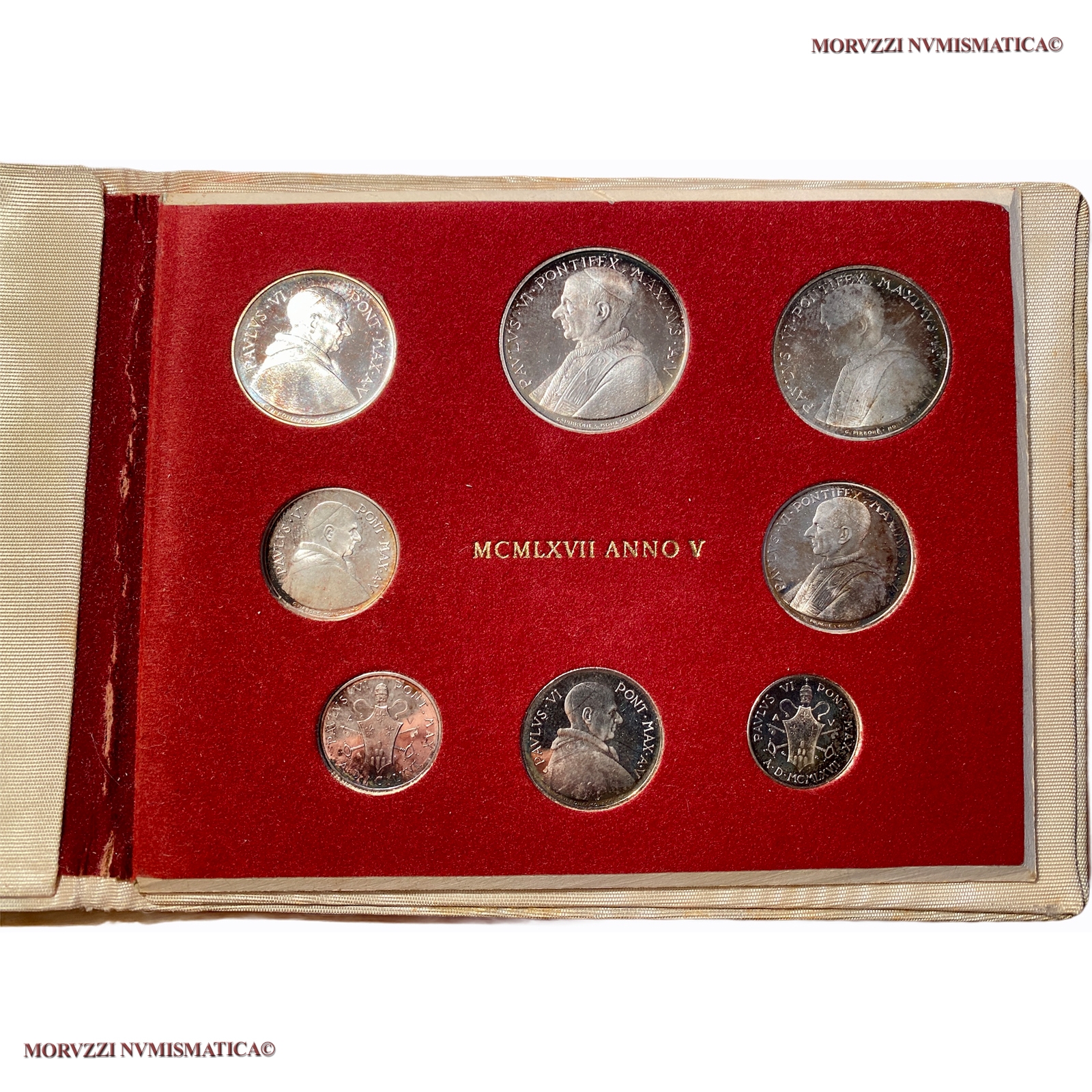 Città del Vaticano, PAOLO VI, SERIE DI PROVA IN ARGENTO DA 8 MONETE, 1967 ANNO V, FDC, (RRR) / monete papali pontificie vaticane rare d'argento (moneta papale pontificia vaticana rara da collezione) - OFFERTA SPECIALE