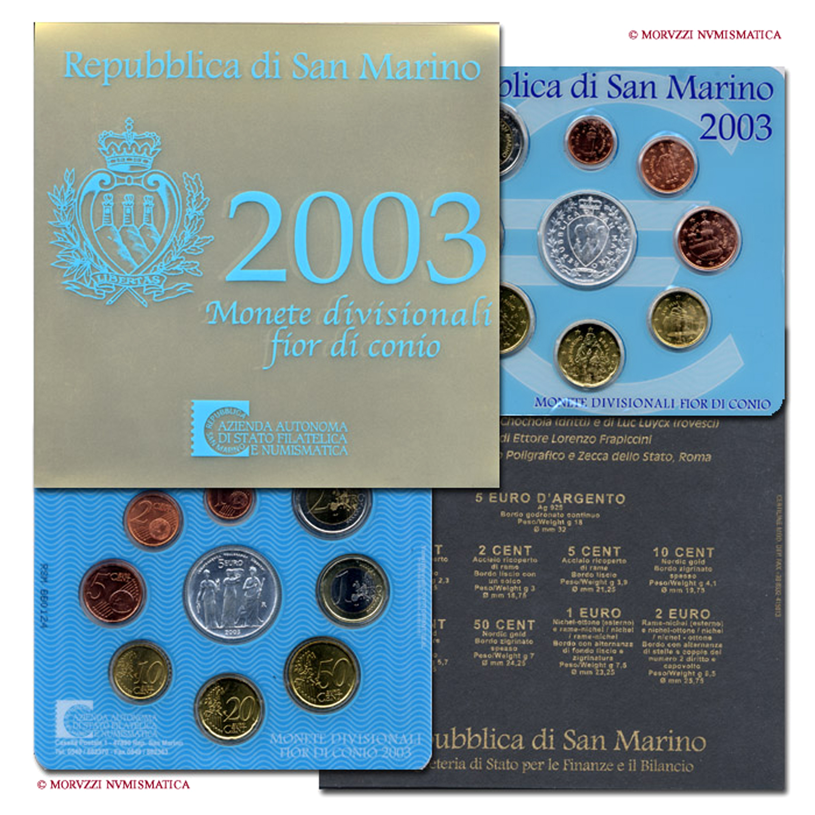 Repubblica di San Marino, serie annuale ufficiale, 9 valori, 2003, FDC - OFFERTA SPECIALE