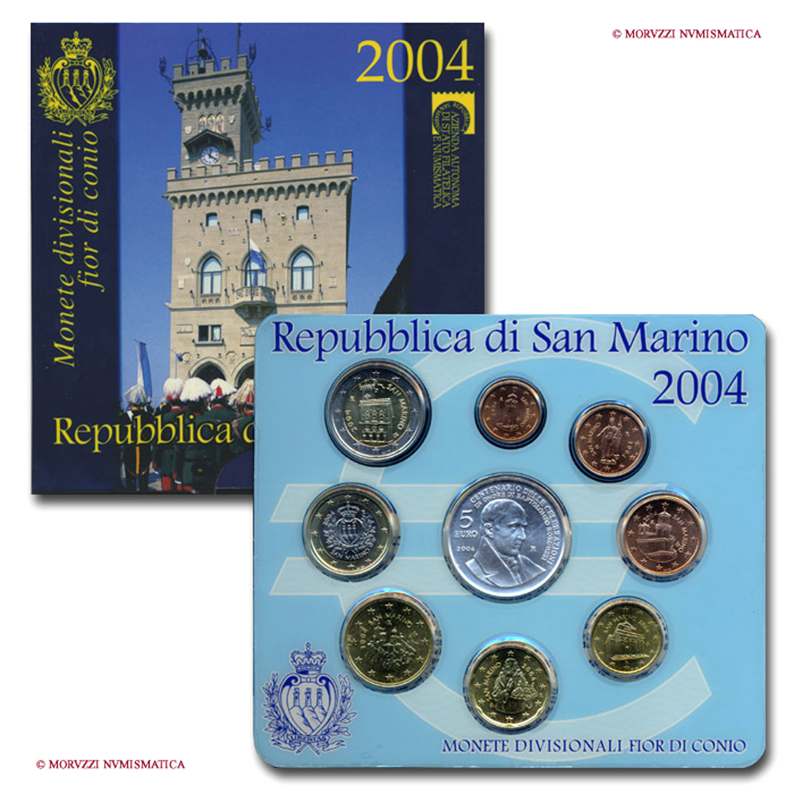 Repubblica di San Marino, serie divisionale, 9 valori, 2004, FDC - SERIE DIVISIONALI EURO BU - OFFERTA SPECIALE