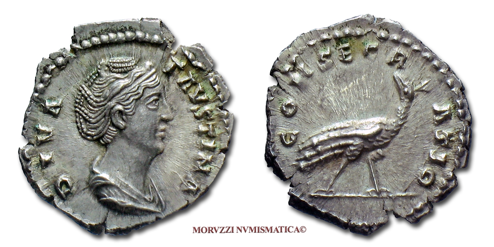 FAUSTINA I, DENARIO, 147 d.C., CONSECRATIO pavone, zecca di Roma, FDC, (RIC 384) / FAUSTINA MAGGIORE (Major) (monete romane imperiali antiche d'argento - moneta romana imperiale antica - Impero Romano) Dinastia degli Antonini - OFFERTA SPECIALE