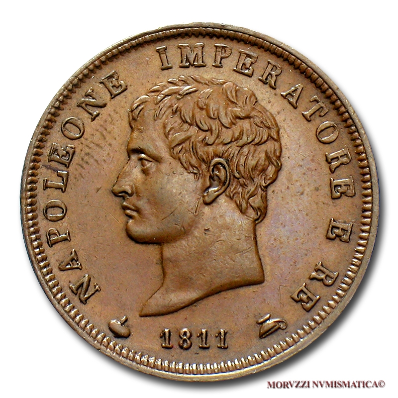 Emissione: 1811 M, Zecca di Milano, Rif. bibl. Pagani, 76; Metallo: CU, gr. 10,12, (MZ71963), Diam.: mm. 27,25, mSPL Ex. P. & P. Santamaria.