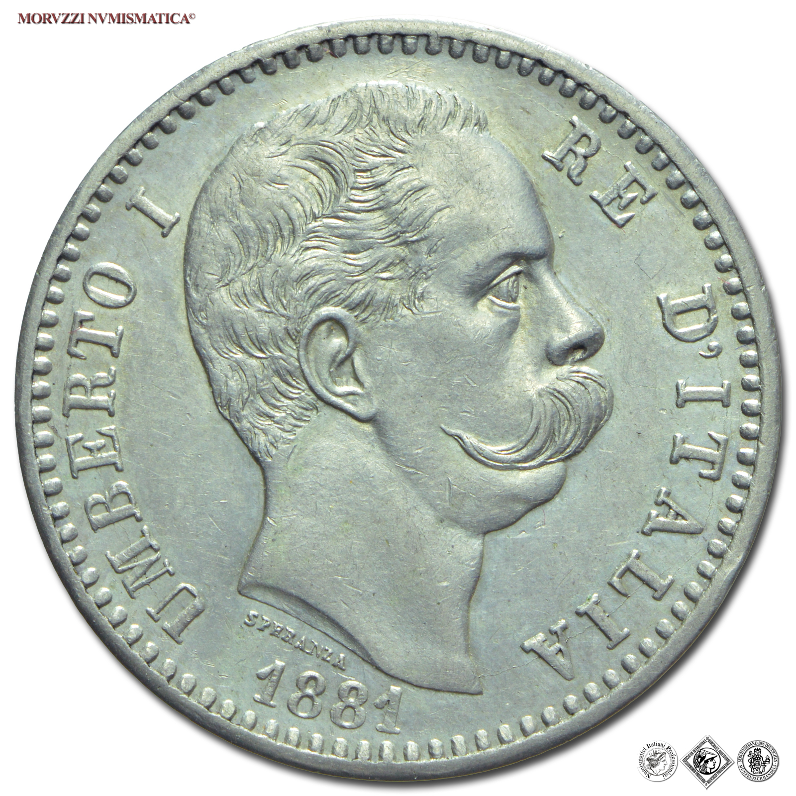 Emissione: 1881, Zecca di Roma, Rif. bibl. Pagani, 591; Metallo: AR, gr. 9,99, (MI30299), Diam.: mm. 27,07, qFDC