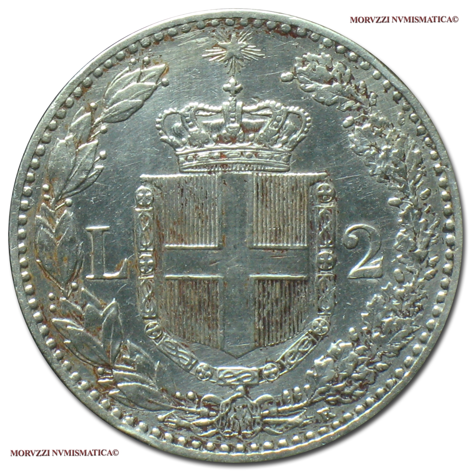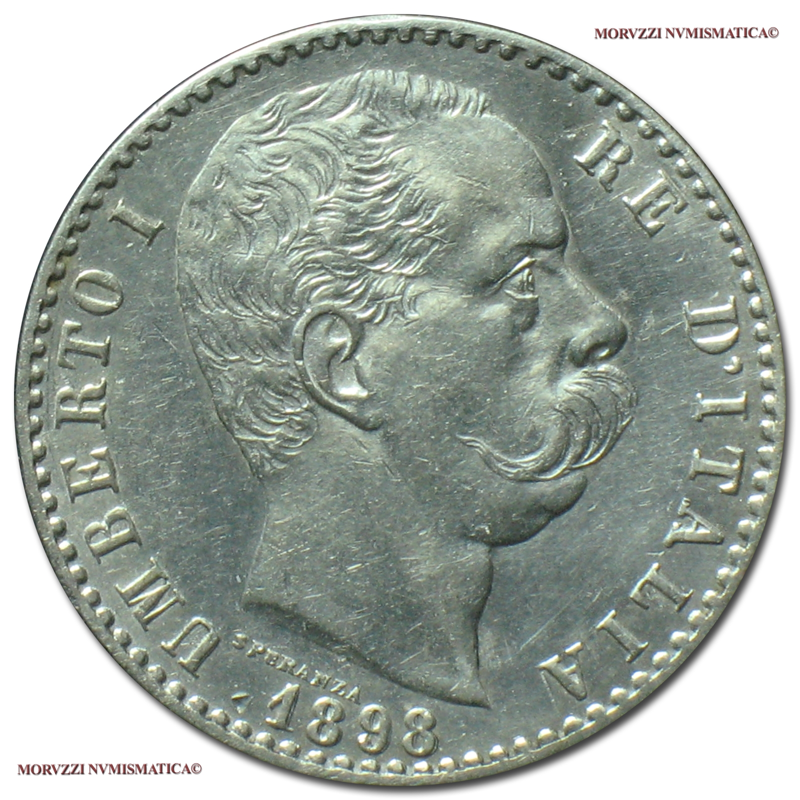 Regno d'Italia, UMBERTO I, 1878-1900, 2 LIRE, Emissione: 1898, D/ UMBERTO I RE D'ITALIA, testa nuda del Re a d.; sotto al collo del Re il cognome dell'autore: SPERANZA; in basso: 1898, R/ stemma Sabaudo contornato da rami di alloro e dal valore L (a s.) e 2 (a d.); in basso, a ore 5, il segno di zecca (R); in alto la Stella d'Italia, Zecca di Roma, Rif. bibl. Pagani, 599; Metallo: AR, gr. 9,95, (MI126949), Diam.: mm. 26,99, qSPL, (R)