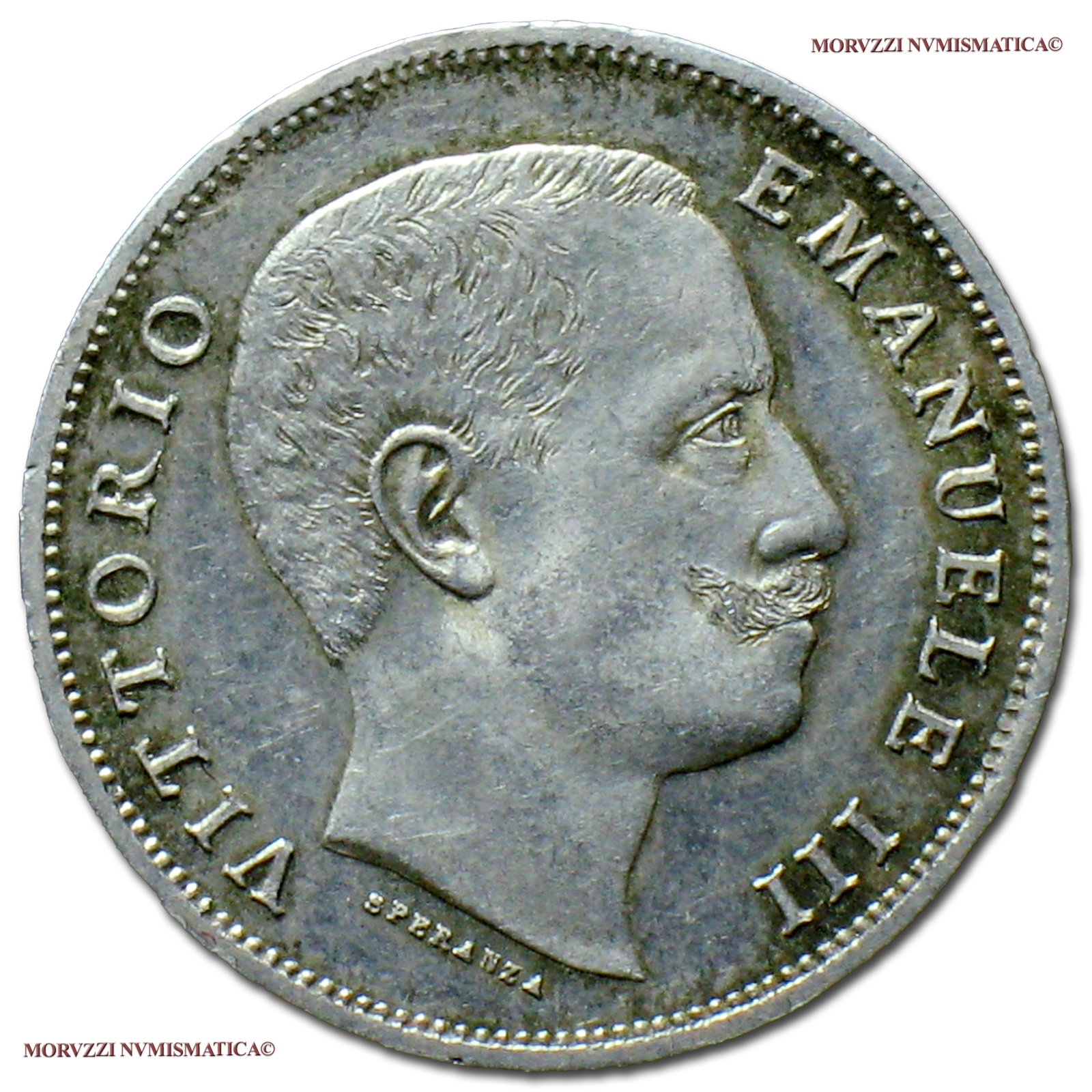 Emissione: 1905, Zecca di Roma, Rif. bibl. Pagani, 765; Metallo: AR, gr. 5,01, (MI108197), Diam.: mm. 23,28, qFDC, (RR)