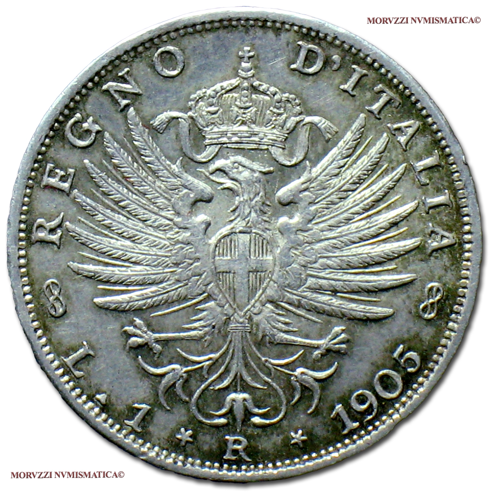 Regno d'Italia, VITTORIO EMANUELE III, 1 LIRA, 1905, Aquila Sabauda, zecca di Roma, ARGENTO, qFDC, (RR), (Pagani 765) / monete italiane moderne rare d'argento (moneta italiana moderna rara da collezione - Casa Savoia)