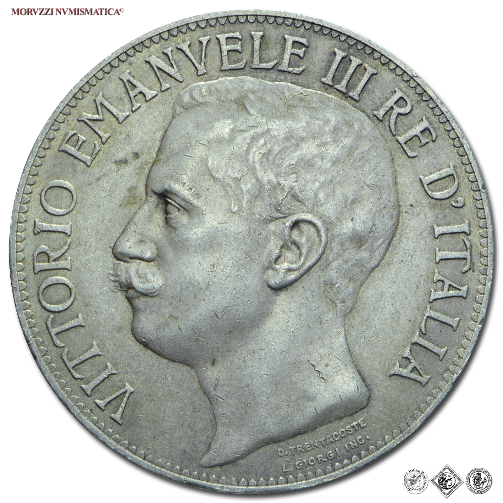 Emissione: 1911, Zecca di Roma, Rif. bibl. Pagani, 707; Metallo: AR, gr. 25,12, (MI130276), Diam.: mm. 37,17, mSPL, (R)