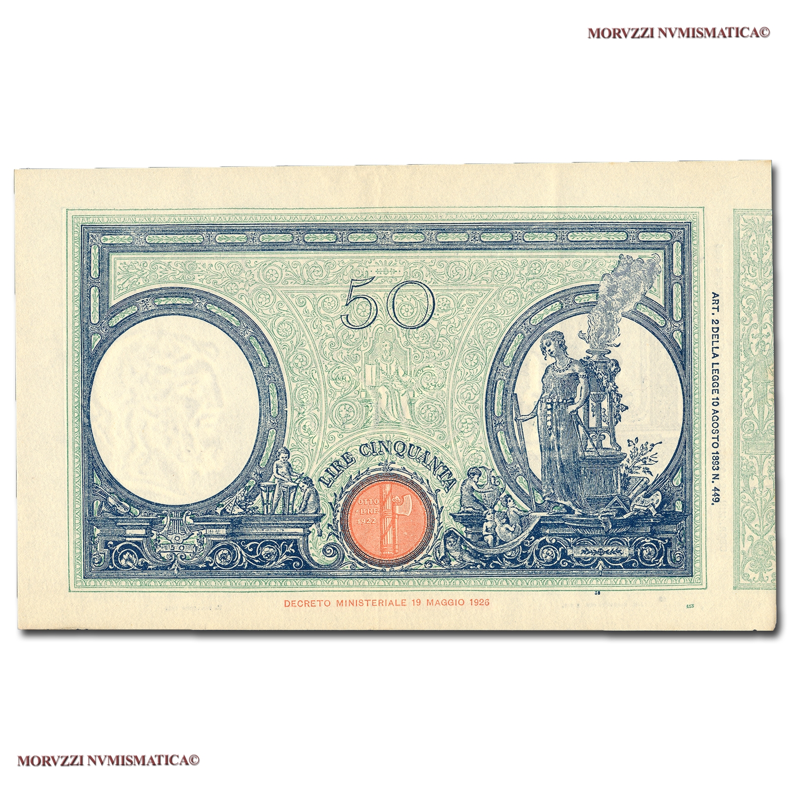 Filigrana: Nell'ovale testa di Nettuno con tridente, nel centro del biglietto "L.50".