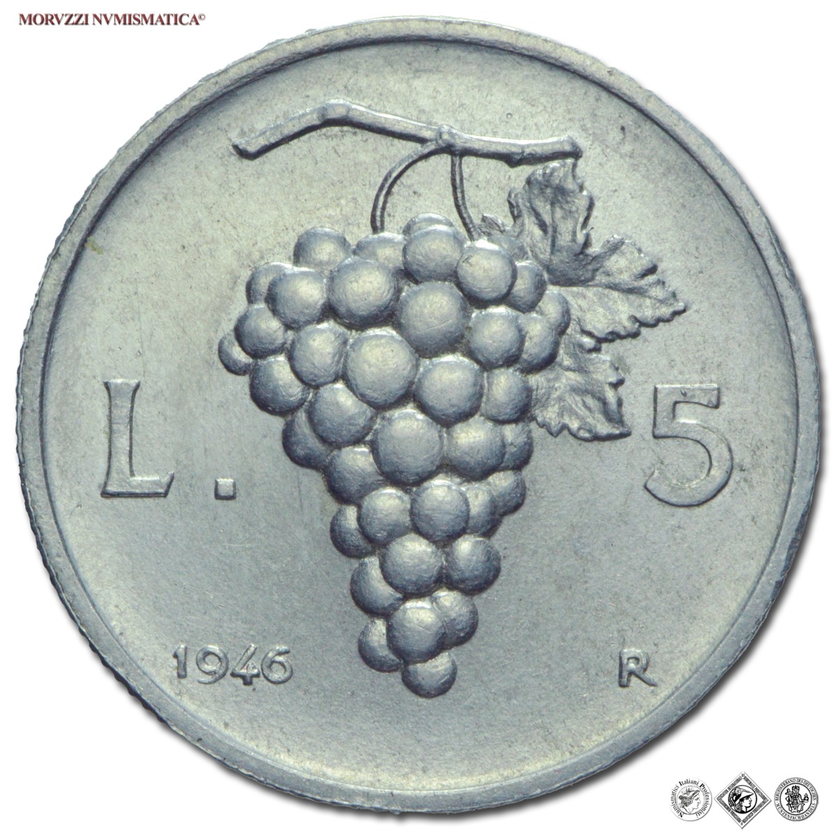 Repubblica Italiana, 5 LIRE, 1946, Uva con data piccola, Zecca di Roma, ITALMA, FDC, (RRR), (Pagani 2351 var.) / monete italiane moderne rare (moneta italiana moderna rara da collezione)