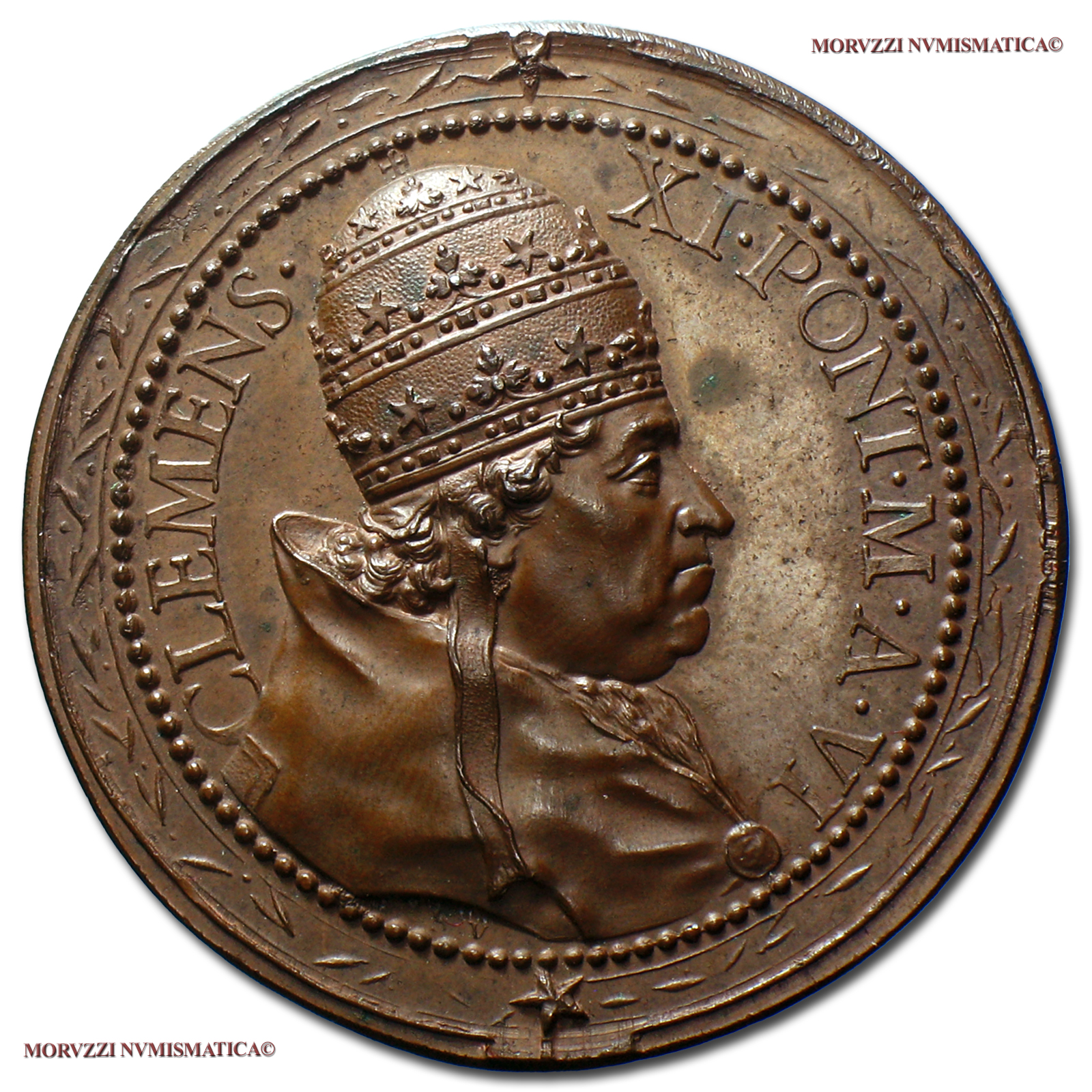 Stato Pontificio, CLEMENTE XI, MEDAGLIA STRAORDINARIA IN BRONZO (contorno floreale), 1706 A VI, Controversia con l'Austria, Opus Ferdinando De Saint-urbain, qFDC, (RR), (Miselli 57) / Clemens XI Albani BRONZE MEDALS (medaglie papali straordinarie rare)