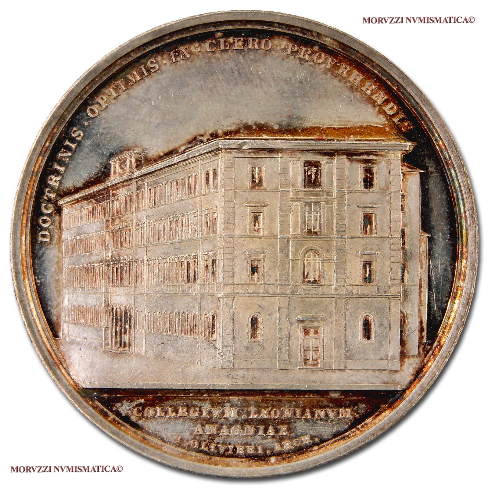 Medaglia annuale coniata, emessa il 29 giugno 1897, con fondo lucido per ricordare la fondazione del nuovo Collegio Leoniano d'Anagni.