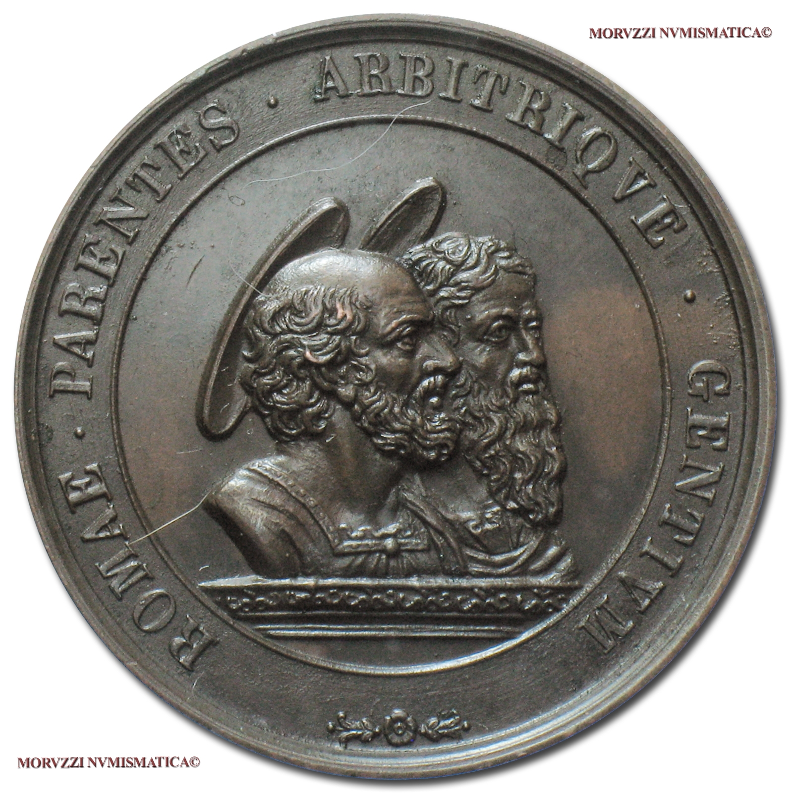 Stato Pontificio, PIO IX, Mastai Ferretti, 1846-1878, MEDAGLIA ANNUALE IN BRONZO, Elezione al pontificato, Emissione: 1846 A I, D/ PIVS • IX • P • M • EL • DIE • XVII • COR • DIE • XXI • IVN • ANNO • MDCCCXXXXVI •, busto a s., con berretto e piviale; sul taglio spalla: G • CERBARA F., R/ ROMAE • PARENTES • ARBITRIQVE • GENTIVM (fregio), busti accollati dei SS. Pietro e Paolo a d., Opus Giuseppe Cerbara, Rif. bibl. Bart. E846; Metallo: AE, gr. 32,28, (MP54269), Diam.: mm. 43,06, SPL