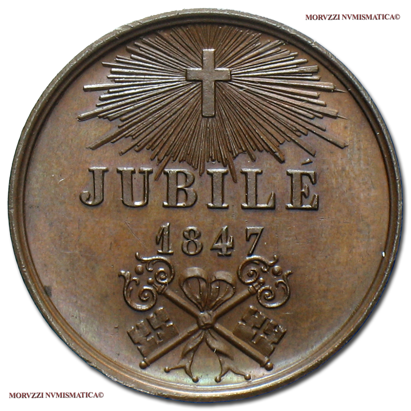 Giubileo episcopale - Jubilè, Emissione: 1847, Opus Maurice Valentin Borrel, Rif. bibl. Bart., I-48; Metallo: AE, gr. 10,31, (MP141034), Diam.: mm. 25,81, qFDC, (R)