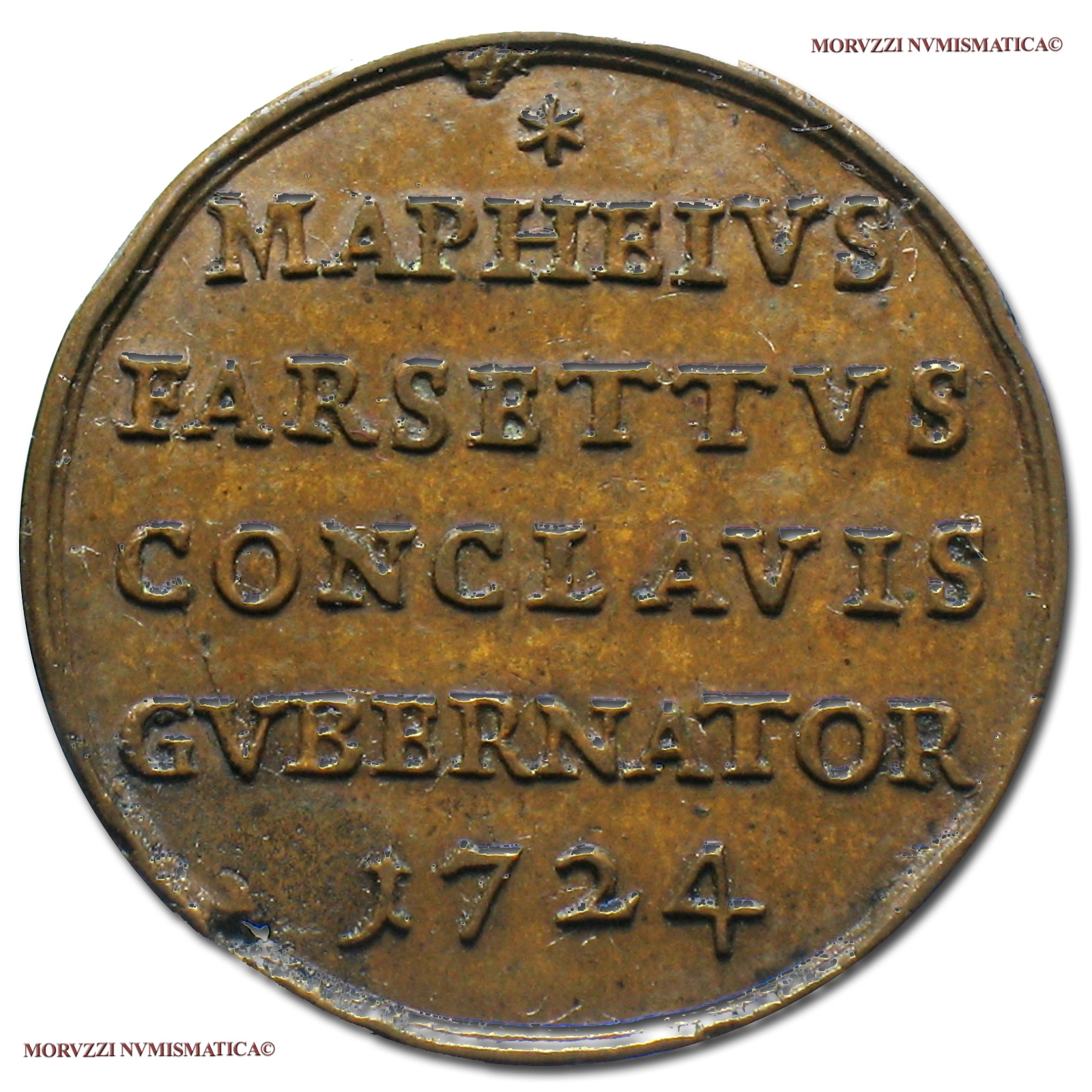 Governatore del Conclave Monsignor Maffeo Farsetti, Emissione: 1724, Opus anonimo, Rif. bibl. Boccia, 31; Miselli, 176; Metallo: AE, gr. 6,24, (MP138242), Diam.: mm. 26,50, SPL, (RR)