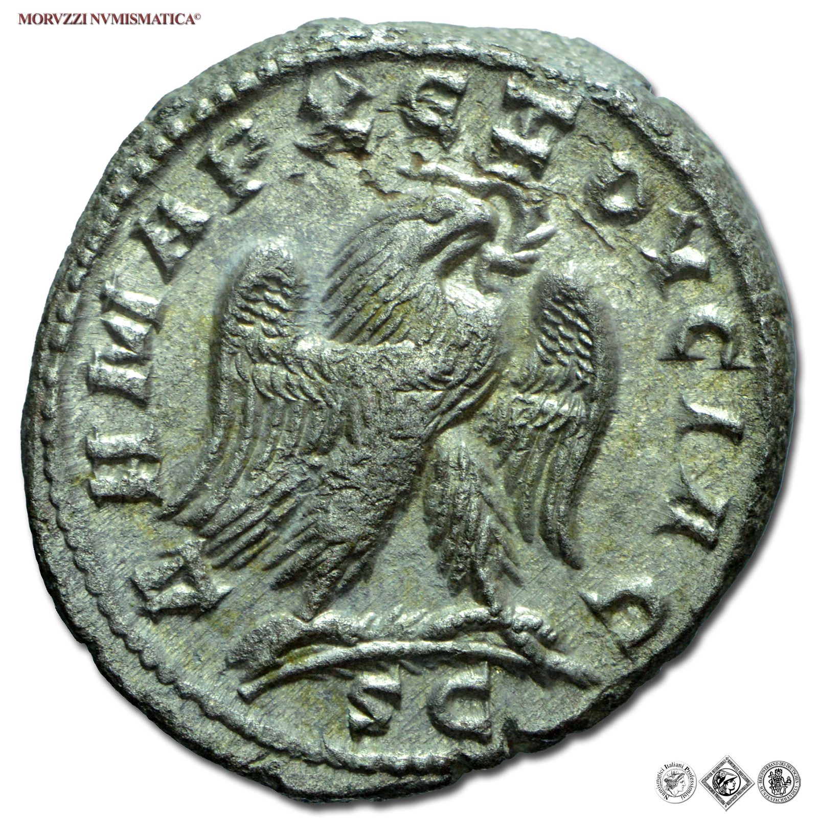 TRAIANO DECIO, TETRADRAMMA, 250-251 d.C., ΔHMAPX ЄΞOYCIAC / S C aquila ad ali aperte con corona nel becco, zecca di Antiochia in Siria, ARGENTO, SPL, (Prieur 577) / monete romane imperiali provinciali antiche d'argento - moneta romana - Impero Romano)